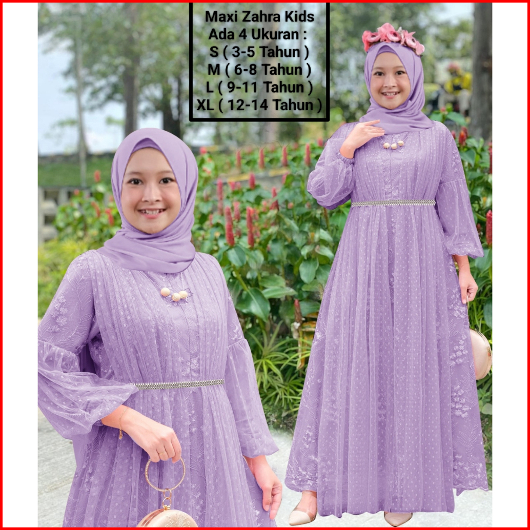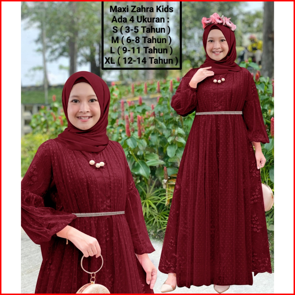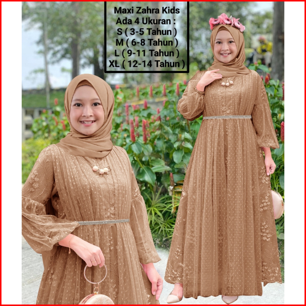 Gamis Anak Perempuan Remaja Abg Terbaru Maxi Zahra Kids 3-14 Tahun Matt Full Brokat Mutiara Di Lapis Furing Hyget Mix Ti