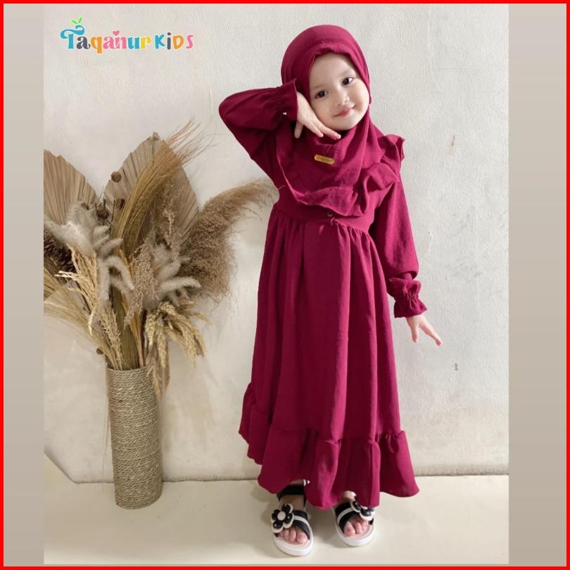 Baju Muslim Anak Perempuan Manasik Set Kerudung Bergo 2 - 12 Tahun Gamis Muslim Anak Terbaru