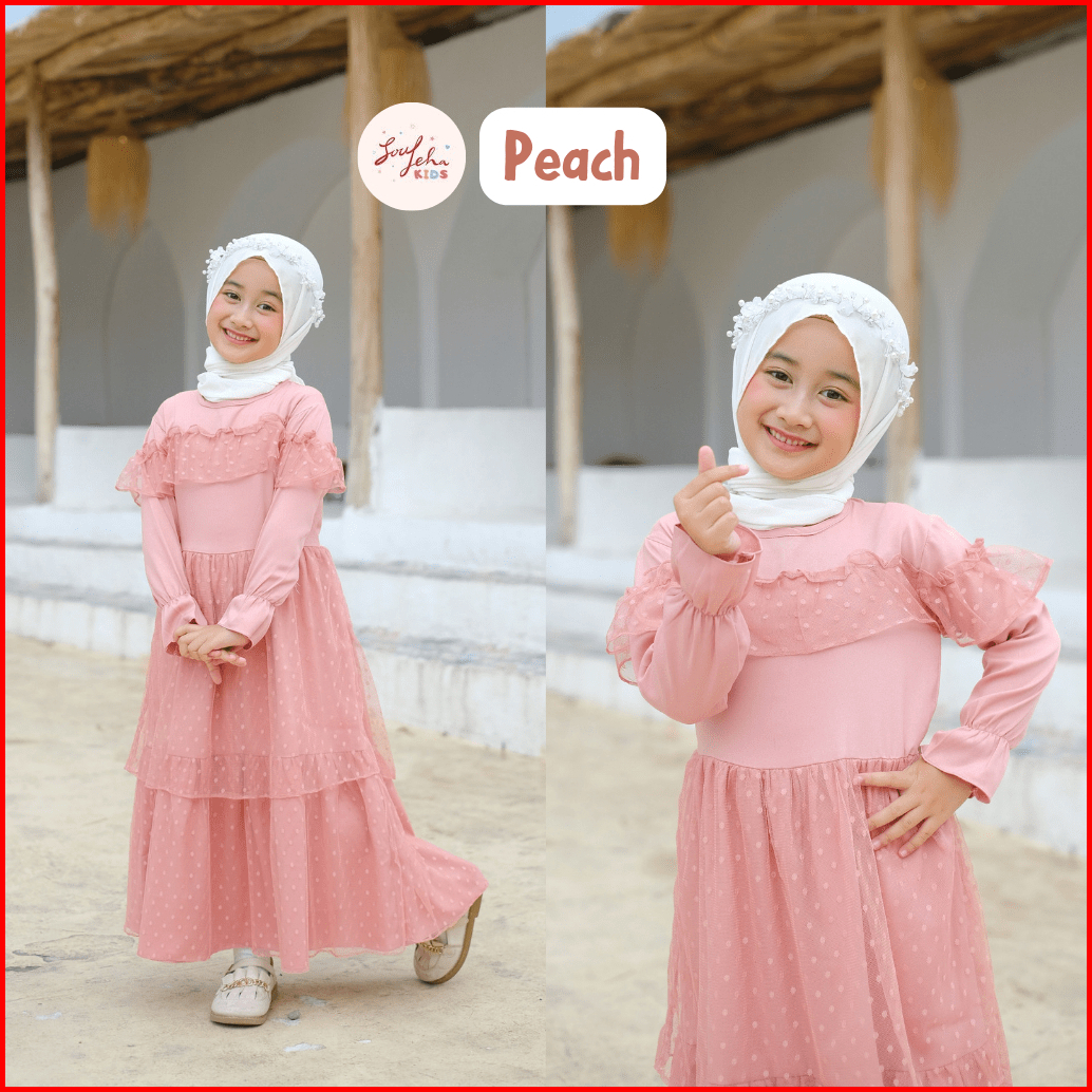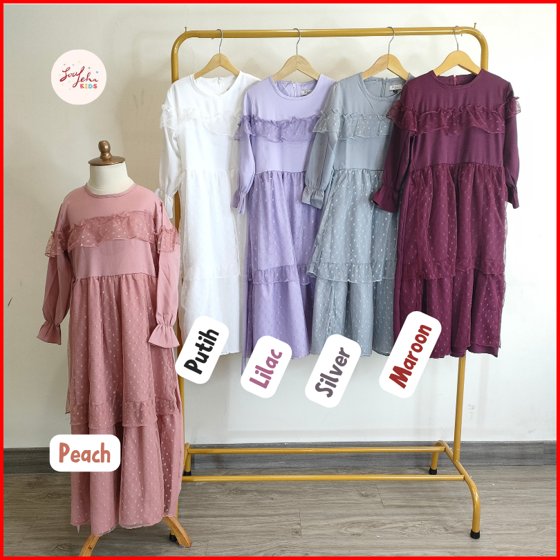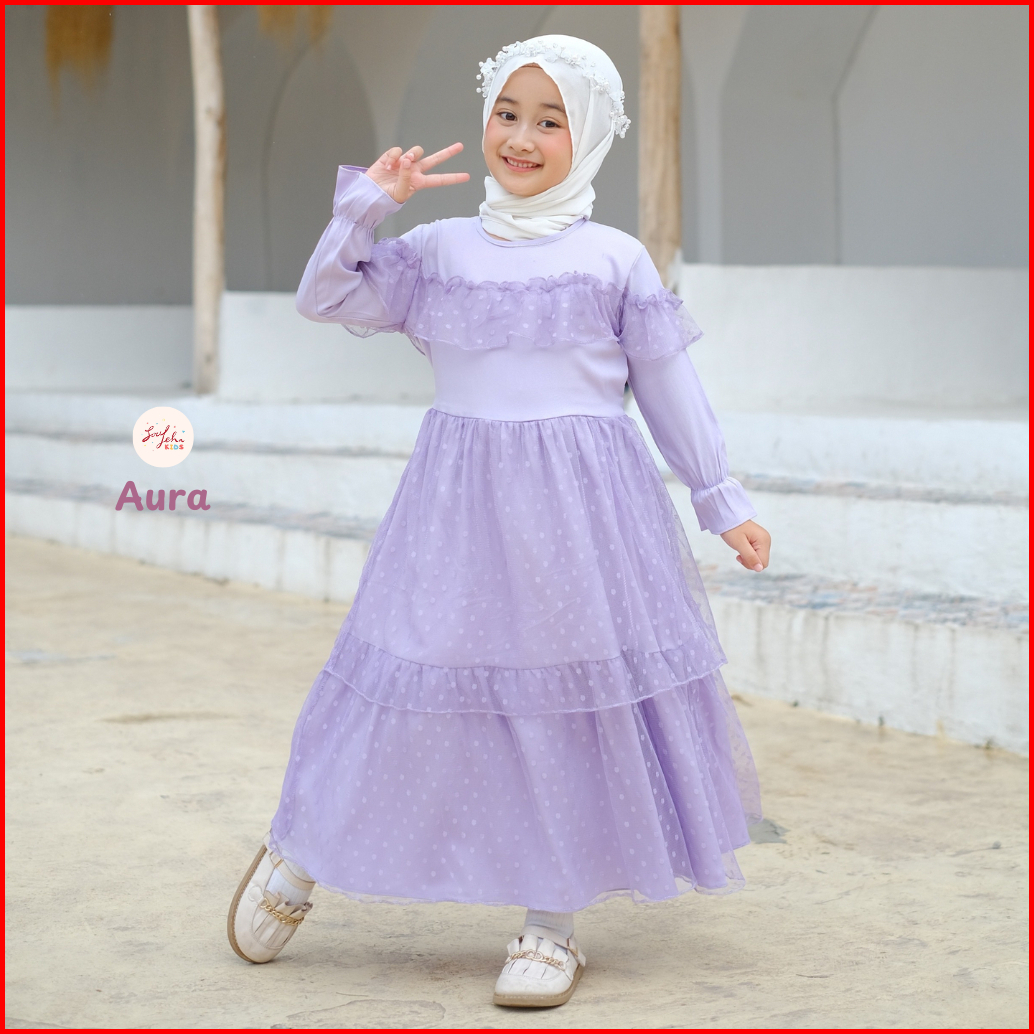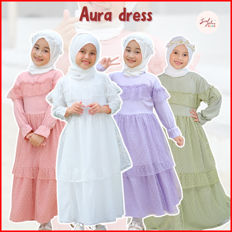 Soulleha Gamis Aura Dress Gamis Lebaran Anak 1-11 Tahun Bonus Jilbab