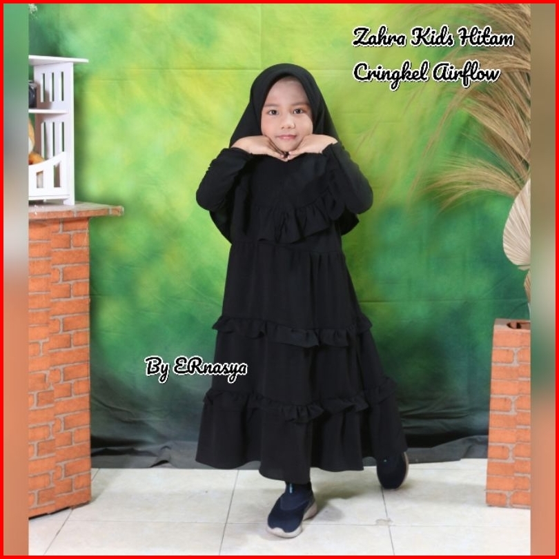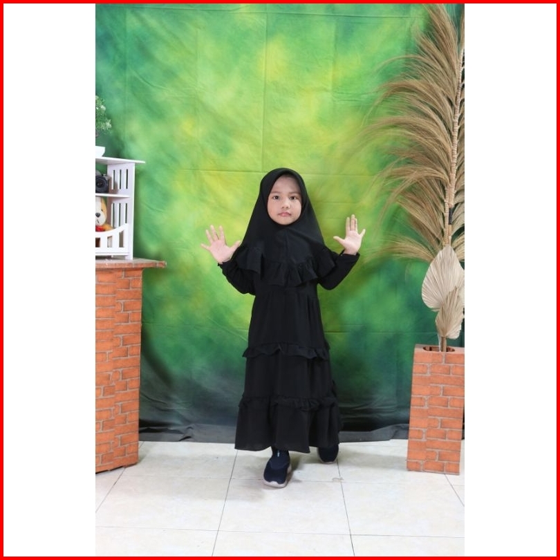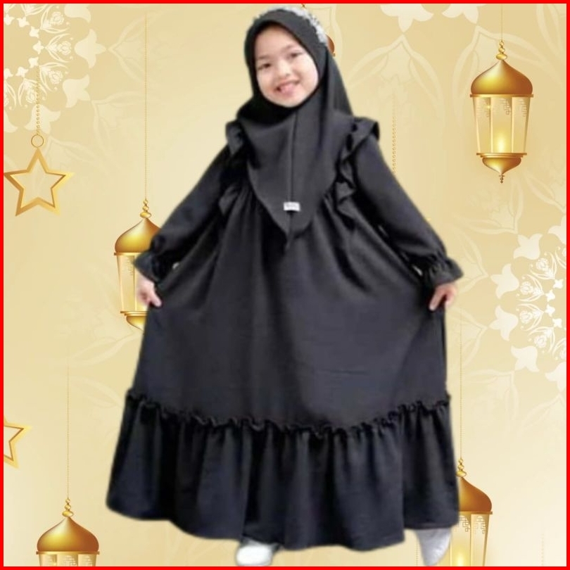 Gamis Anak Hitam Series Set Hijab 2-15 Tahun Atika Zahra Canda Delisha Plain Cordelia Afiyah Alya Sheilla Kids Gamis Ana