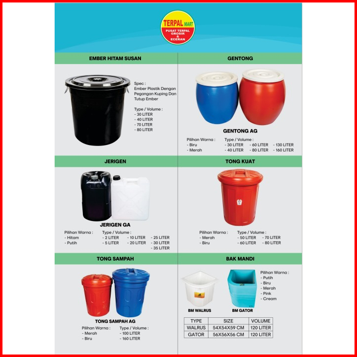 Tong Sampah Plastik 50-160 Liter Warna Beragam