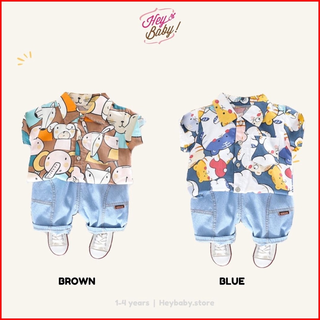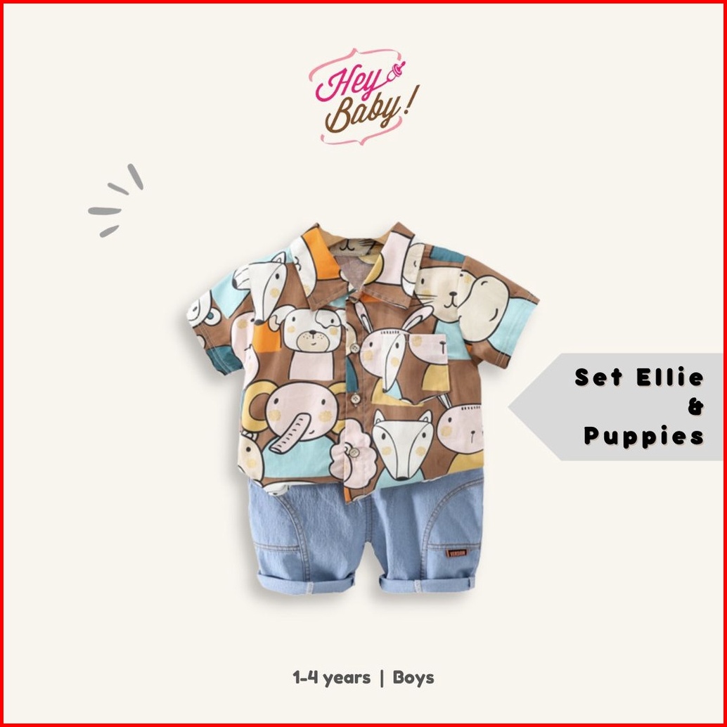 Heybaby Set Ellie Puppies Ebv Setelan Bayi Laki-laki Lengan Pendek