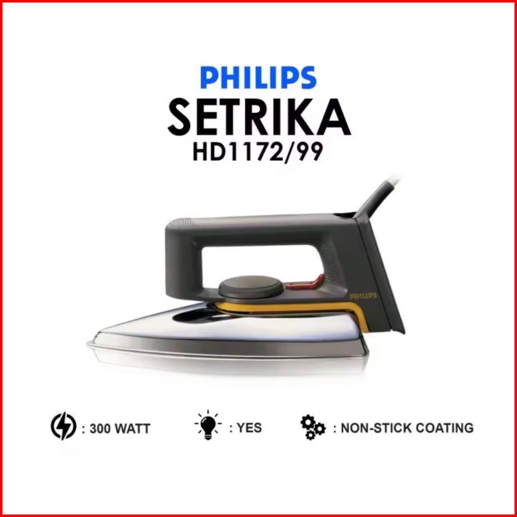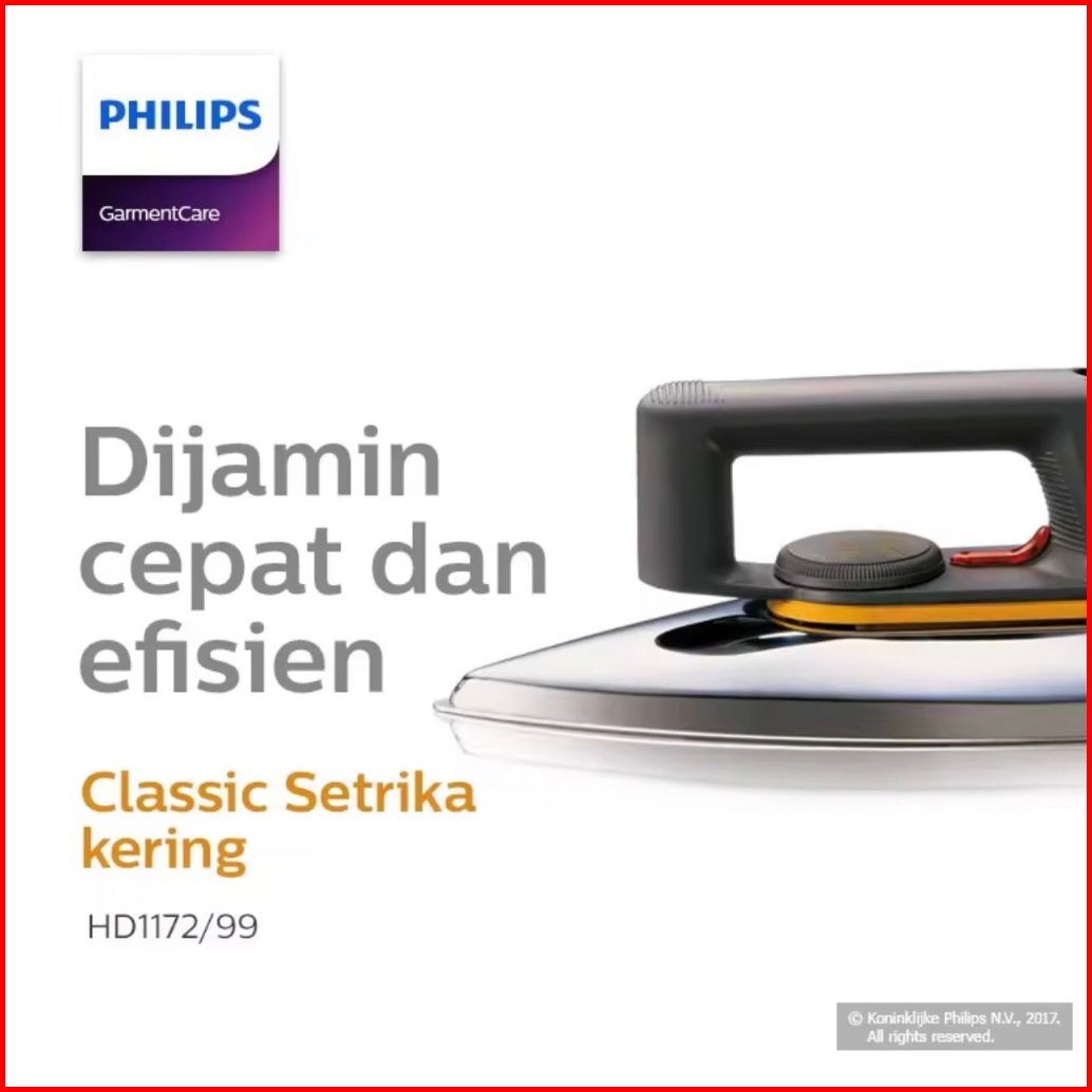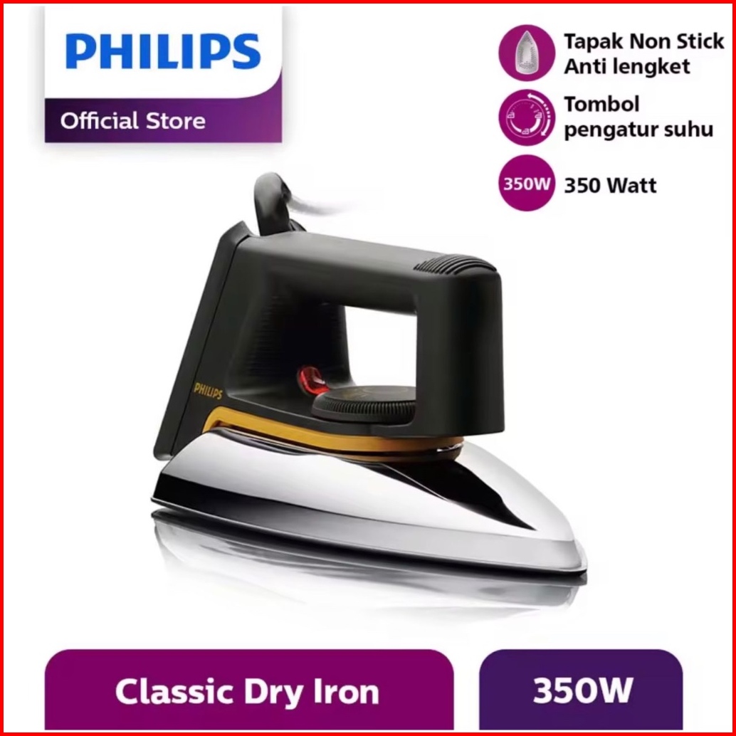 Philips Setrika Kering Classic Hitam Tapak Anti Lengket Gosokan Philips Original Garansi Resmi