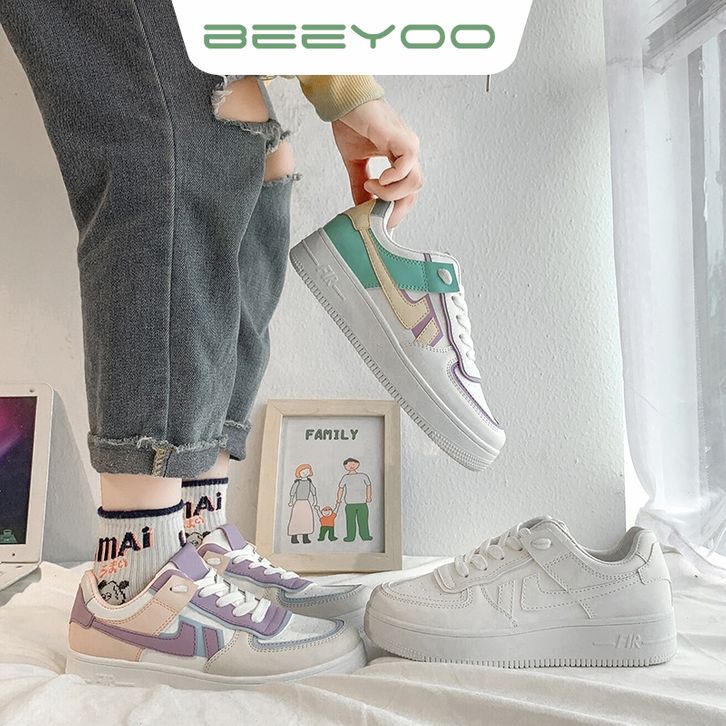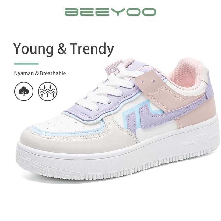 Beeyoo Sepatu Sneakers Wanita Fashion Korea Casual Sport Shoes Warna Pastel Kets Sepatu Pink WK116