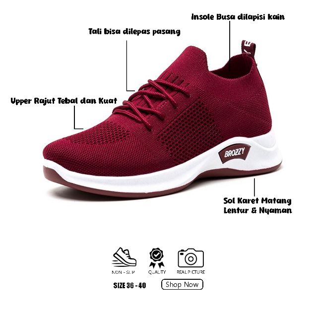 Brozzy Sepatu Sneakers Wanita Olahraga Sepatu Kets Perempuan Senam Terbaru Joging D10