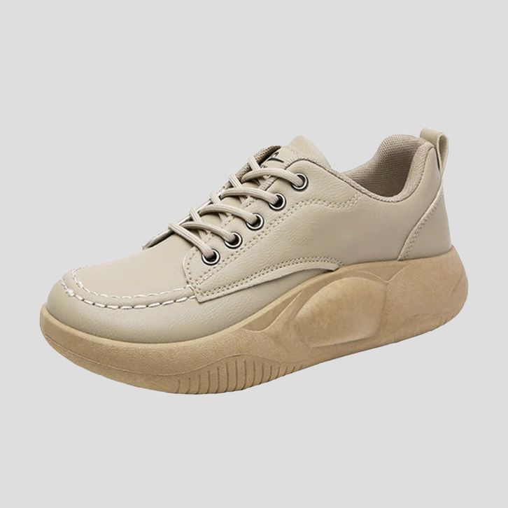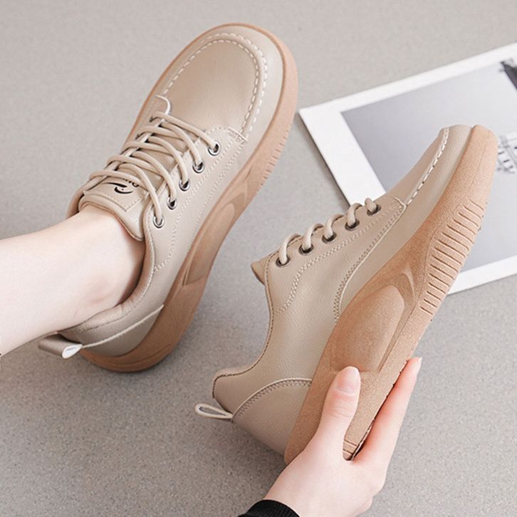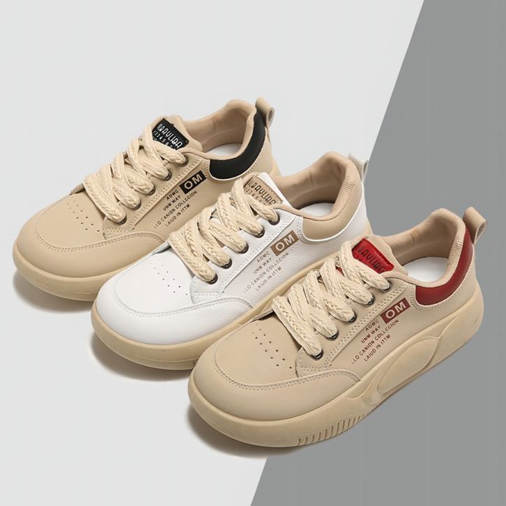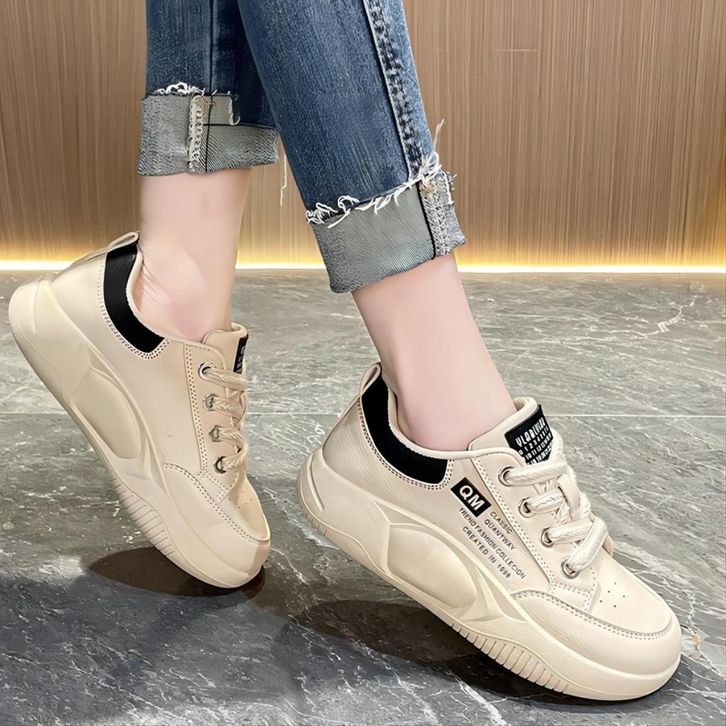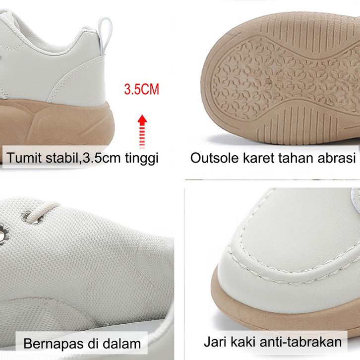 Sepatu Korea Wanita Sneakers Fashion Putih Casual Perempuan Sport 3.5cm Tiggi Krem/ Cokelat ST054