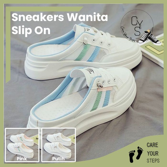 CYS Sepatu Sneakers Wanita Cewek Slip On Mesh Breathable Korea Kets Kekinian Import Sport SPT-22
