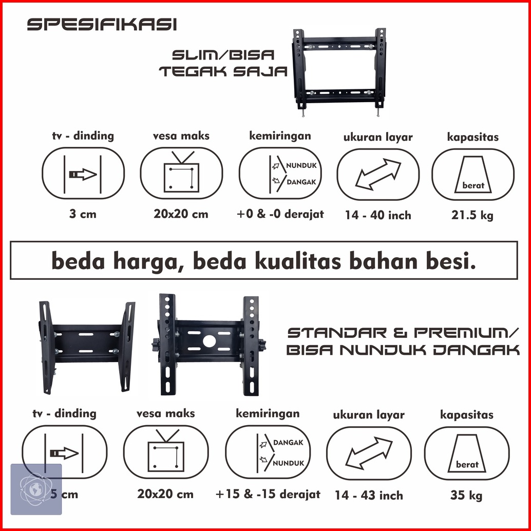 Bracket Tv Led Lcd 32 40 43 24 21 29 17 14 Inch Dijamin Cocok 14 - 43 In 2 Arah Universal Breket Tv Briket Tv Braket Tv