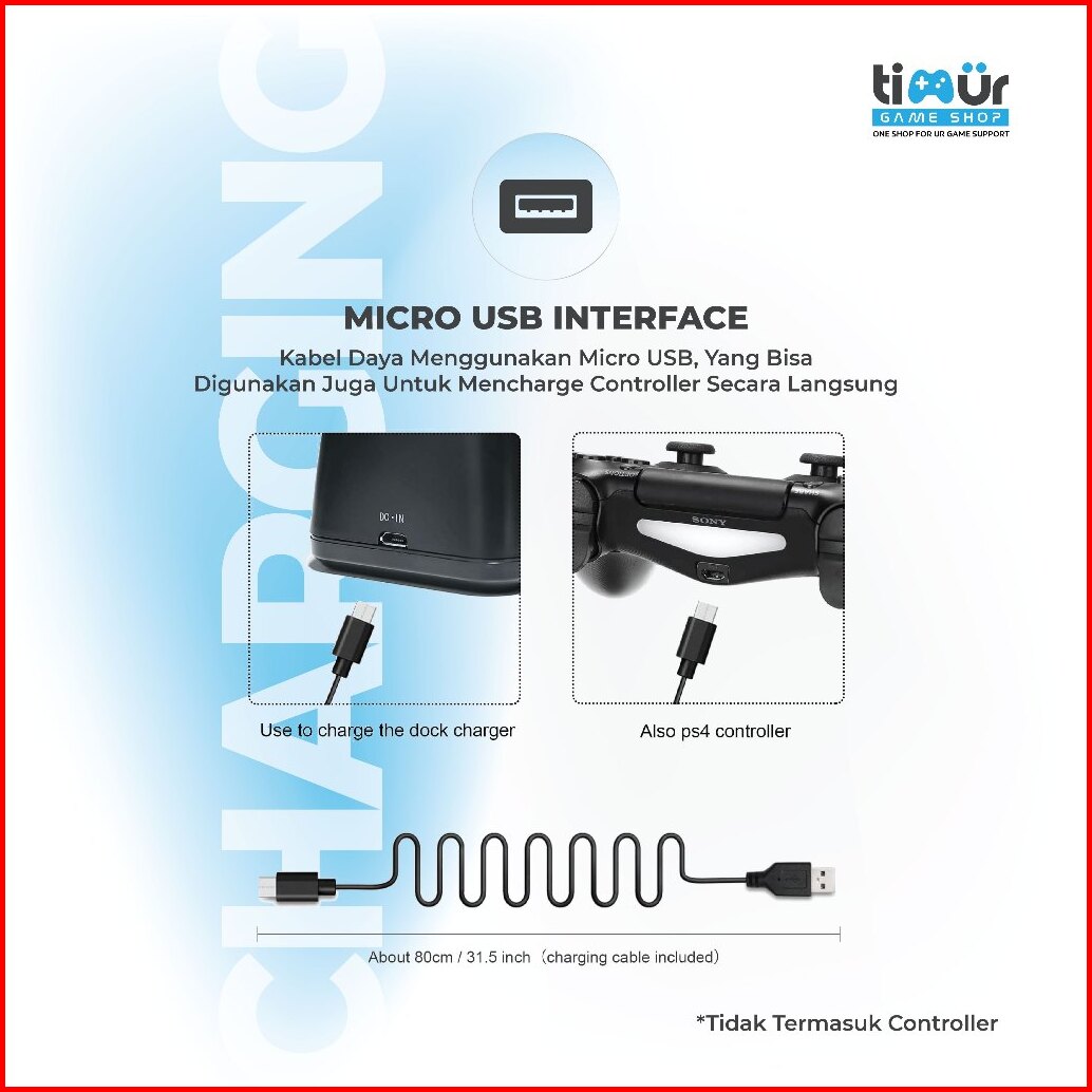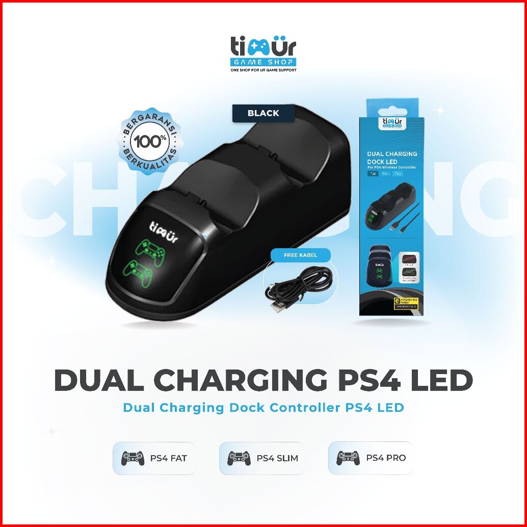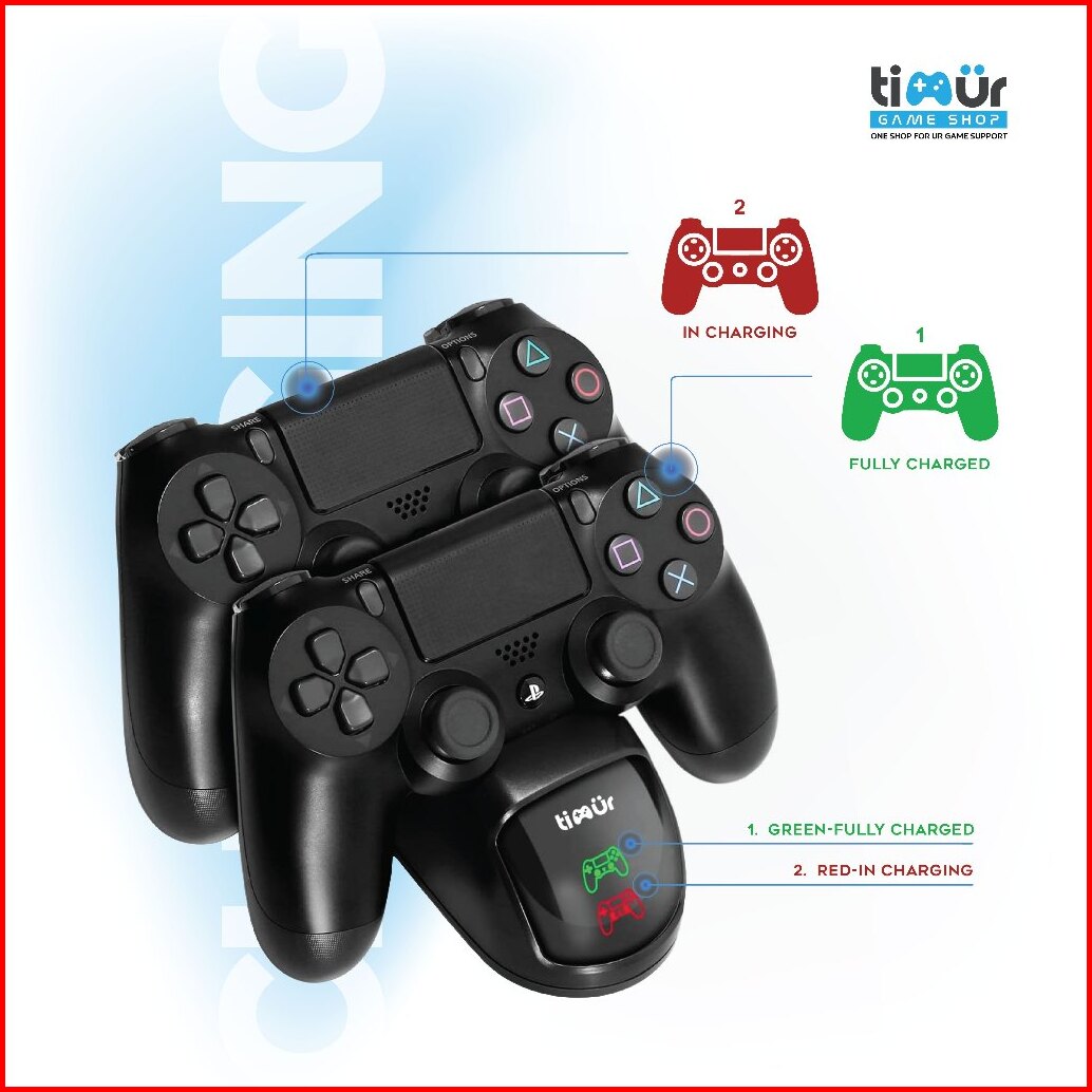 Dual Charging Dock Usb Charger Station Stik Stick Ps4 Led Timur Game Shop