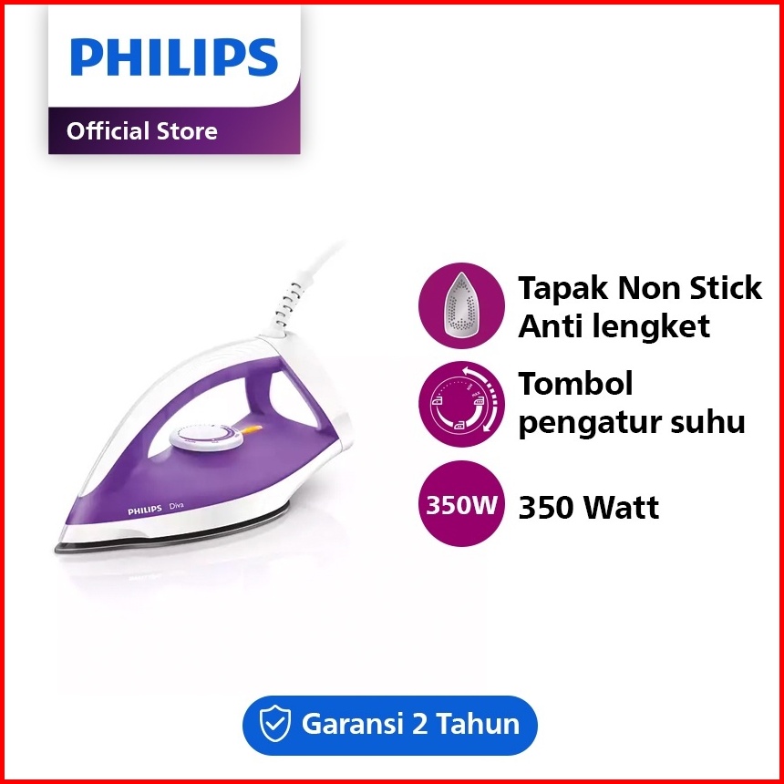 Philips Setrika Kering Diva Gc122 37 Ungu - Setrikaan Promo Murah Tapak Strika Anti Lengket Tahan Lama