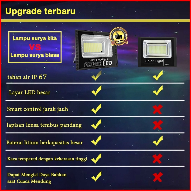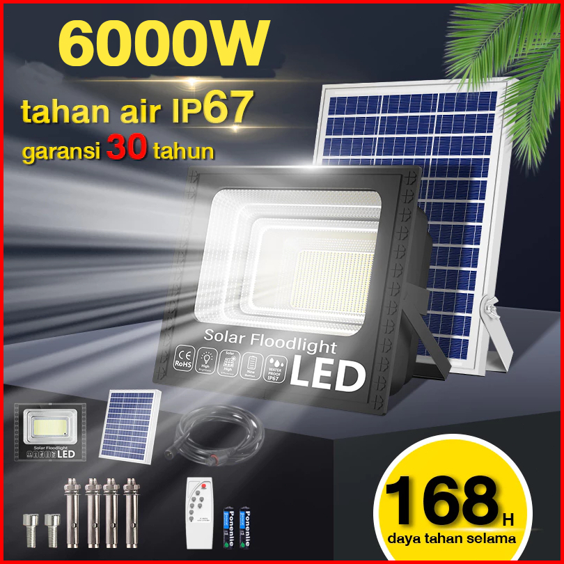 Garansi 10 Tahun Lampu Tenaga Surya Outdoor Otomatis Nyala 6000w Lampu Sorot Led Solar Cell Panel Surya Gratis Kabel 5 M