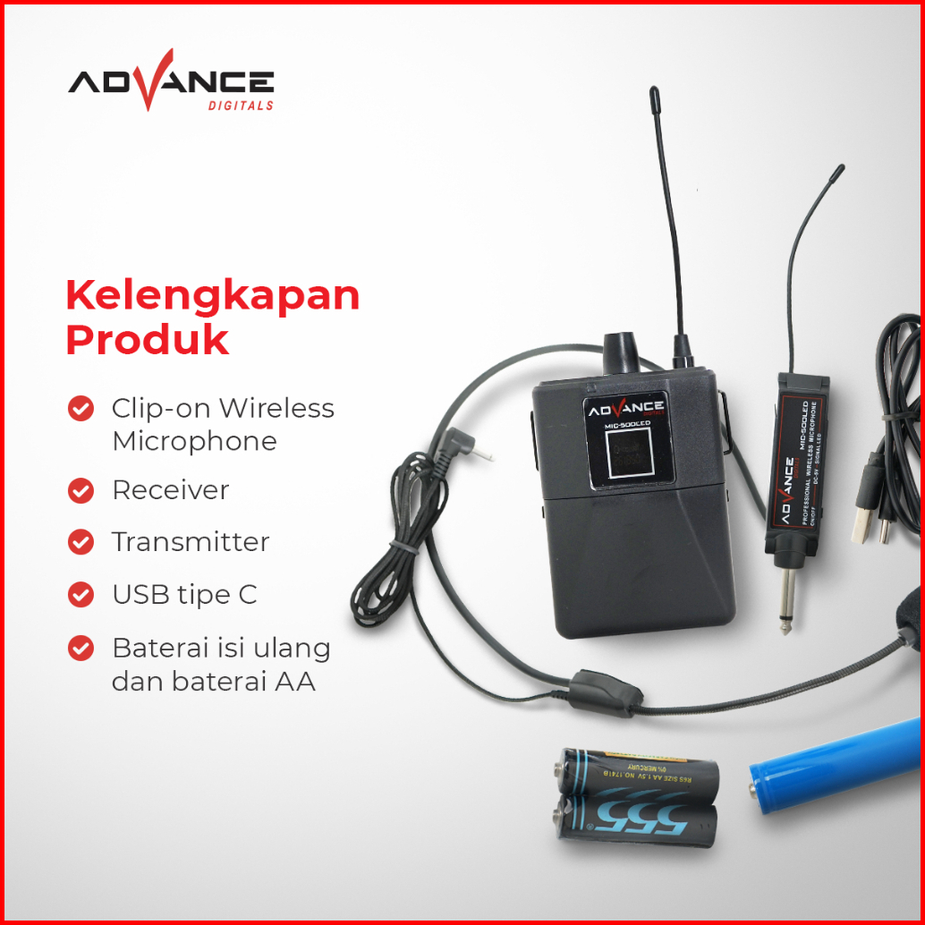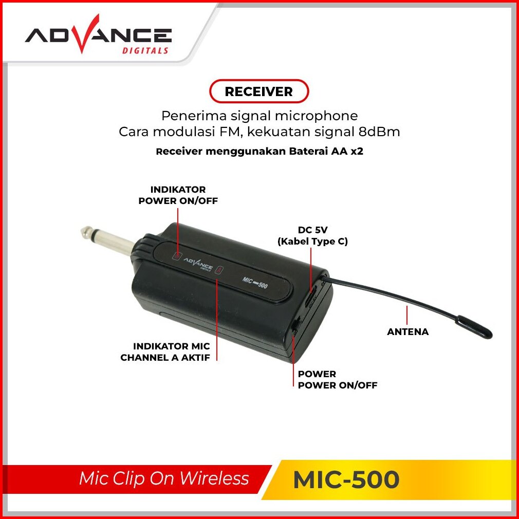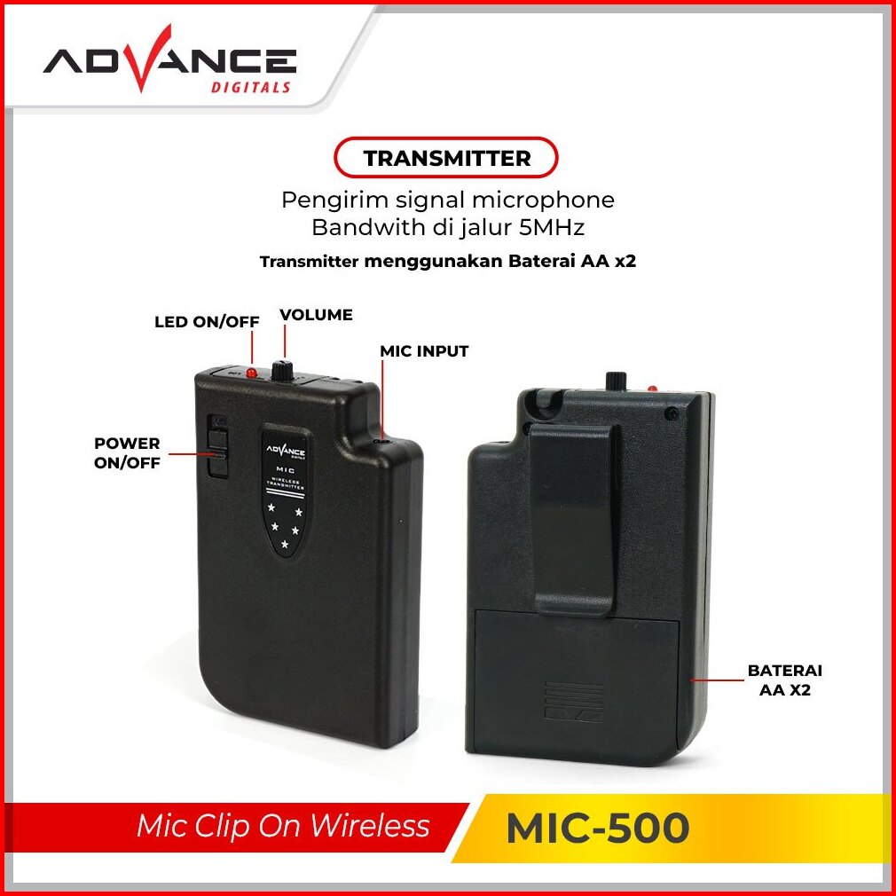 Advance Mic-500 Mic Clip On Bando Wireless Microphone Receiver Led Display