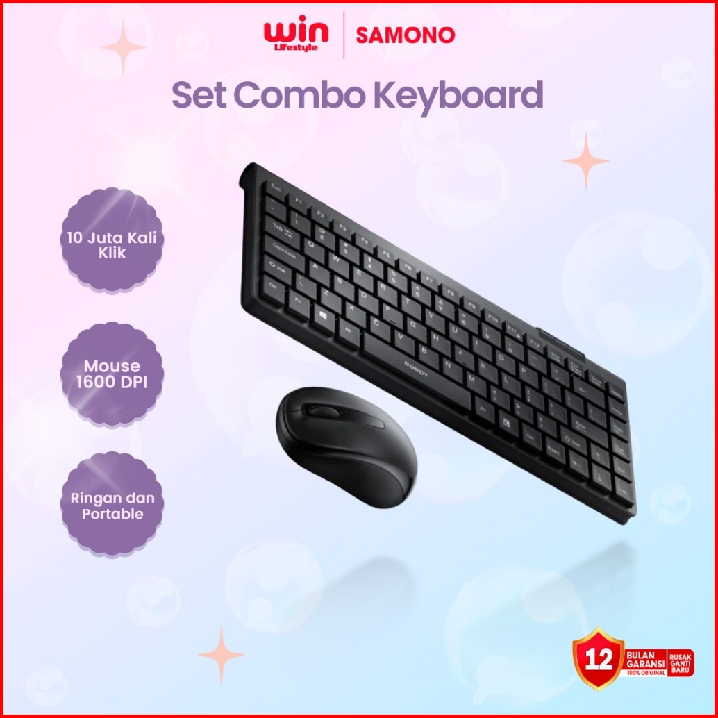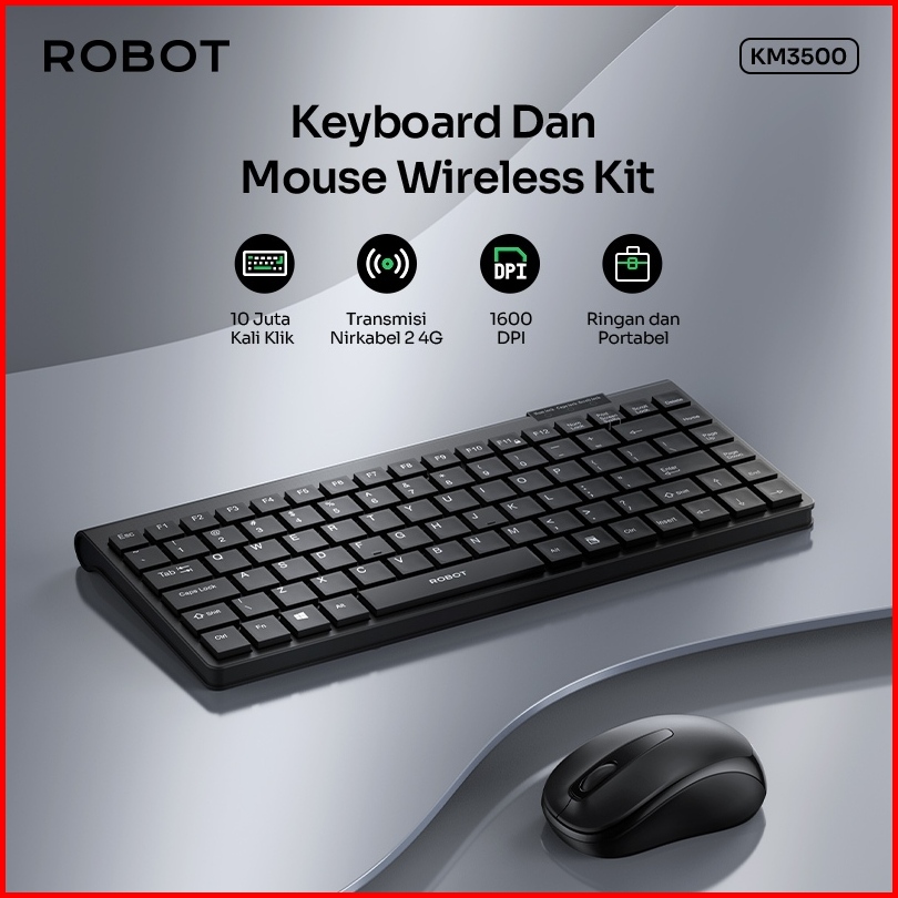 Robot Portable Mini Wireless Set Combo Keyboard And Mouse Km3500 Keyboard Wireless Original - Garansi 1 Tahun