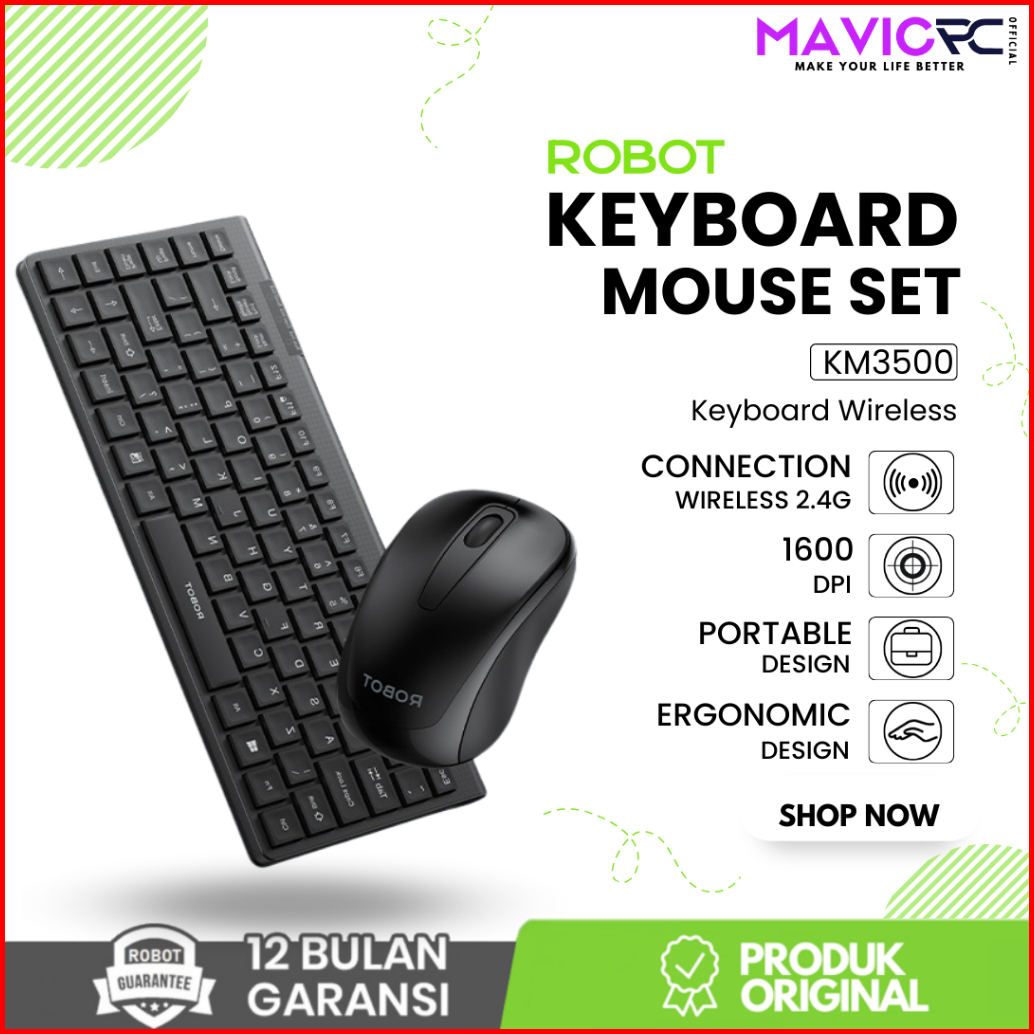Robot Km3500 Keyboard Mouse Wireless Combo Set Kit Ultra Thin Light Design Portable - Garansi Resmi 1 Tahun