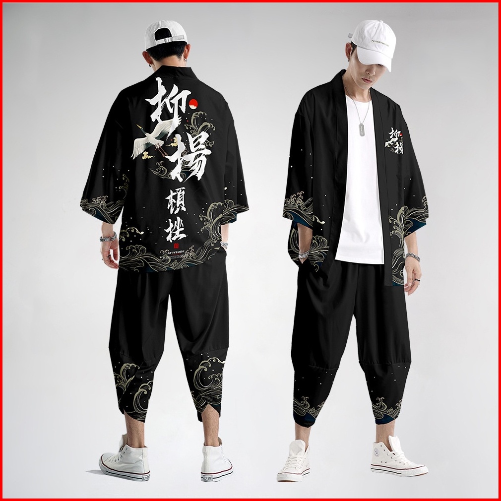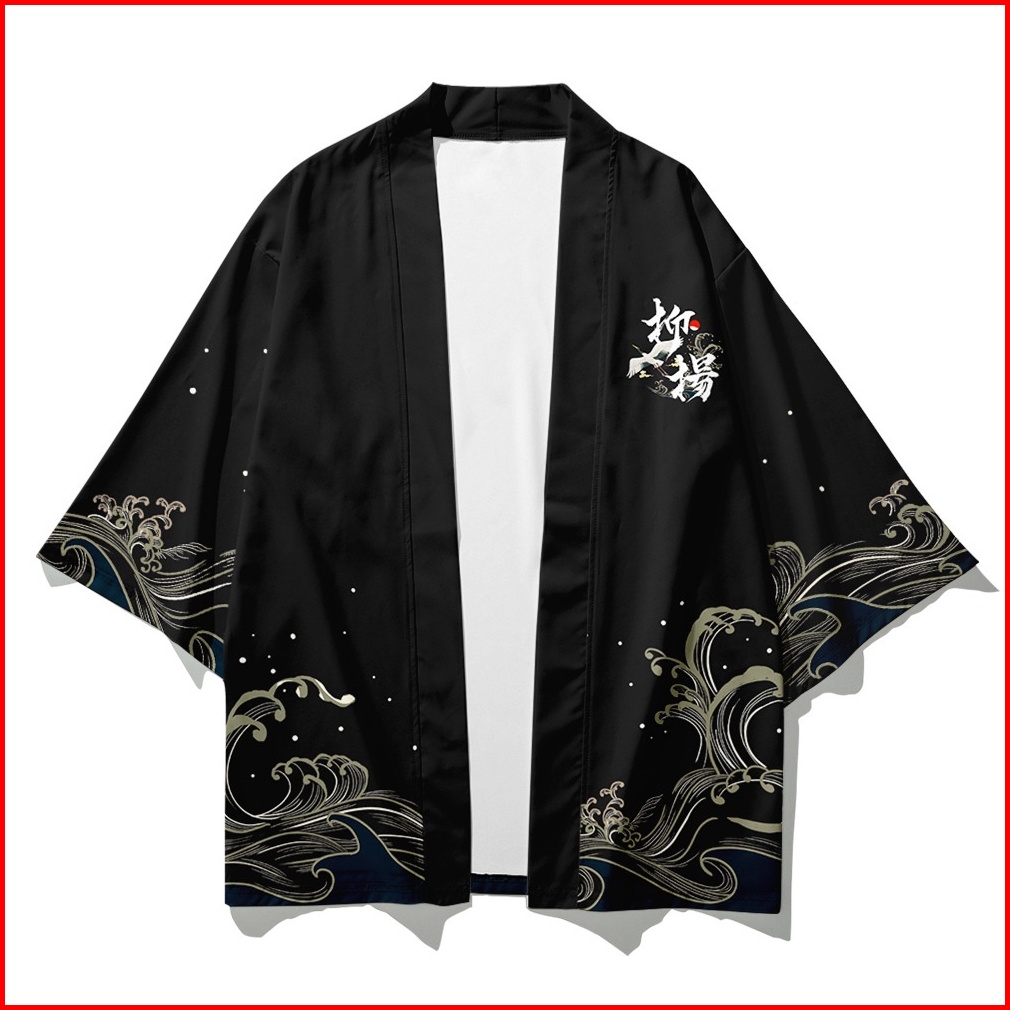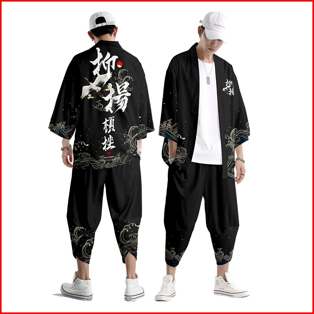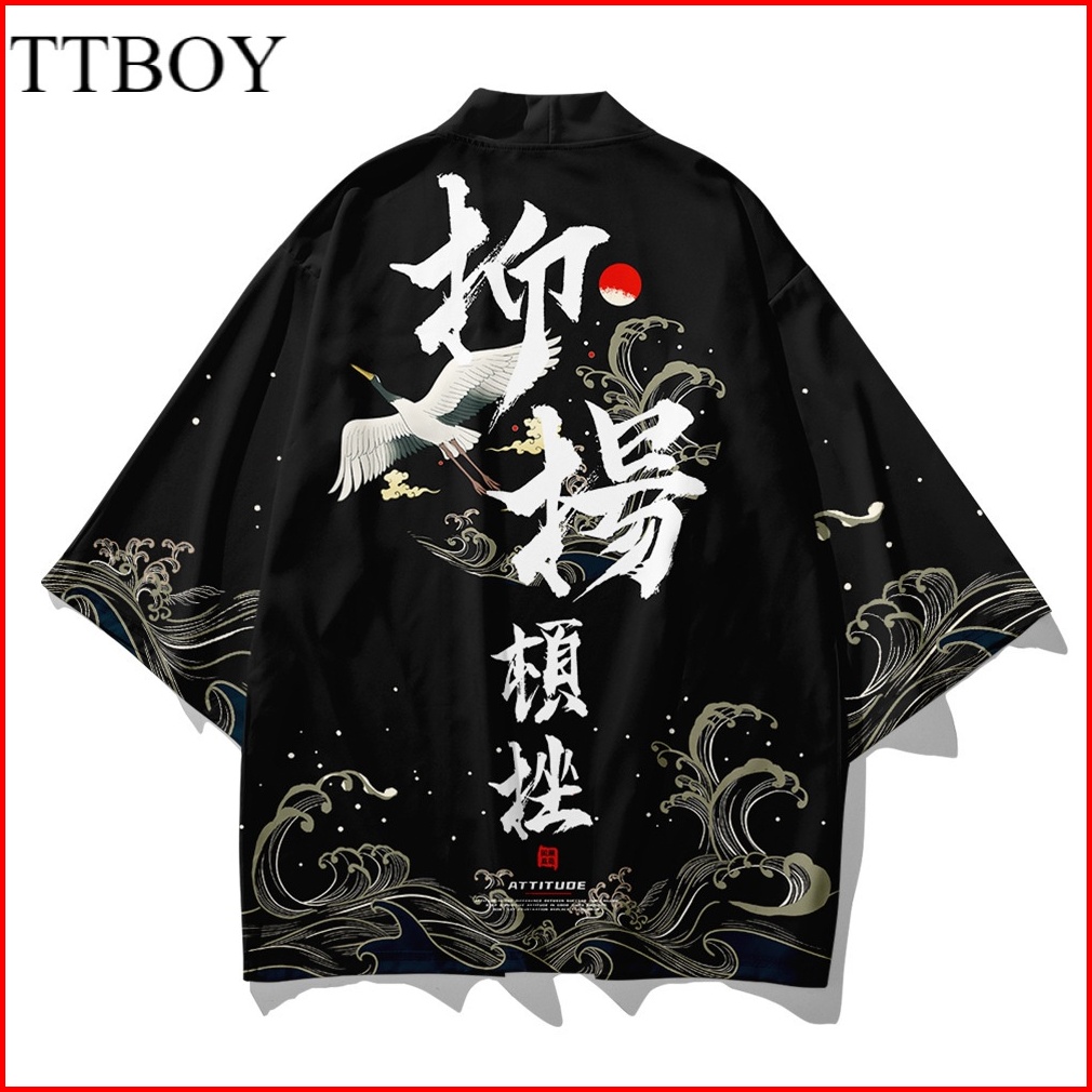 Fashion Men Women Loose Japanese Traditional Crane Cosplay Streetwear Casual Hitam Cardigan Fashion Harajuku Kimono Jepa