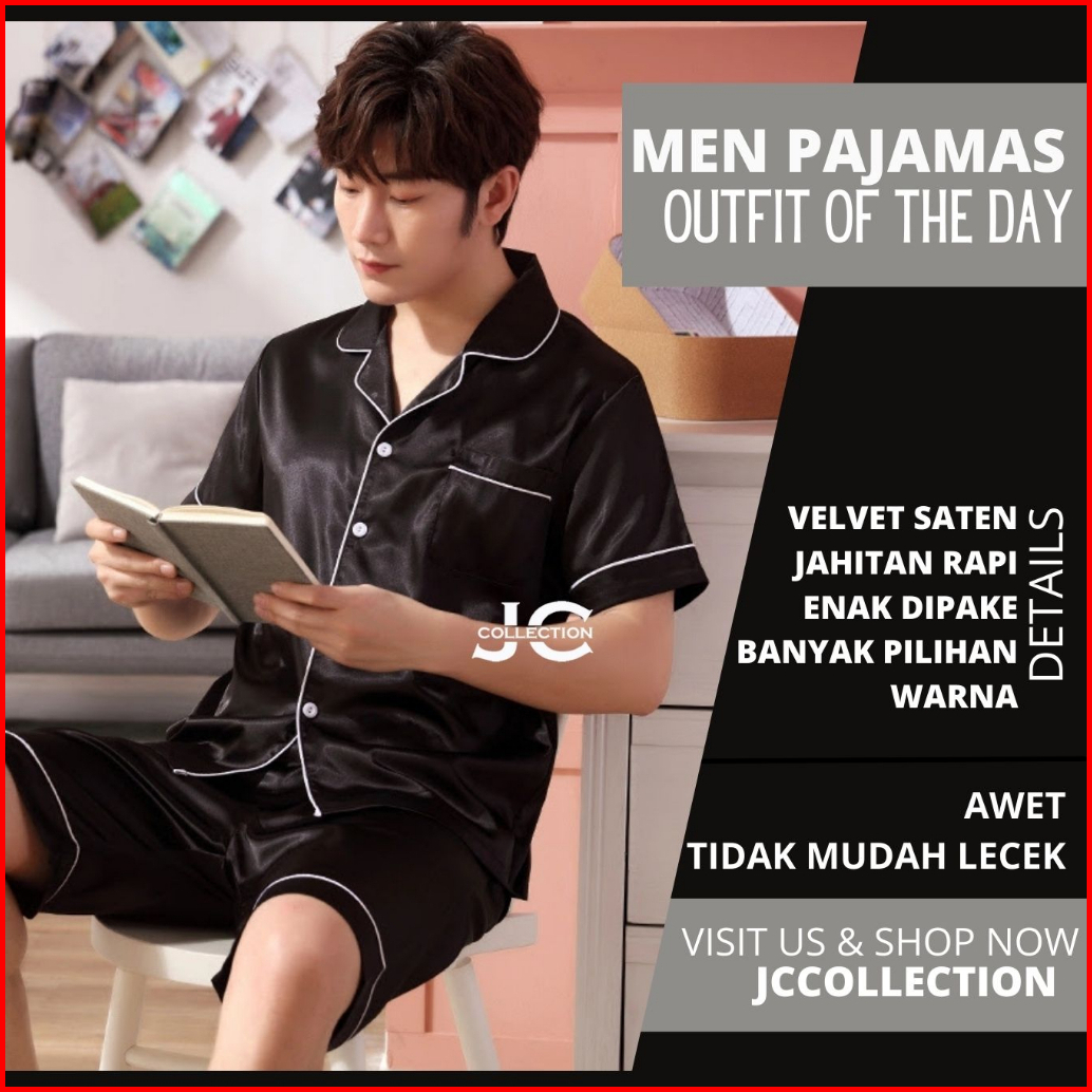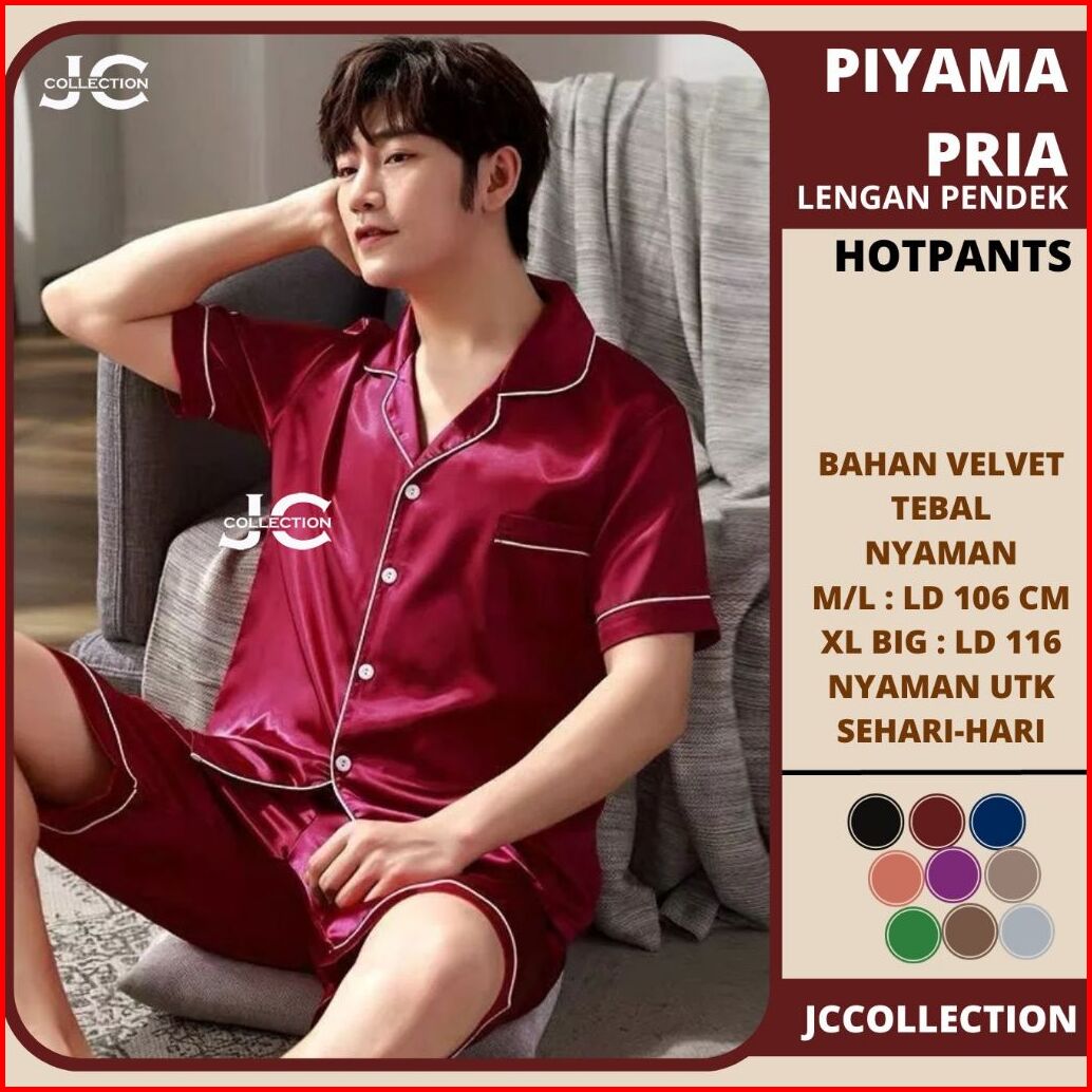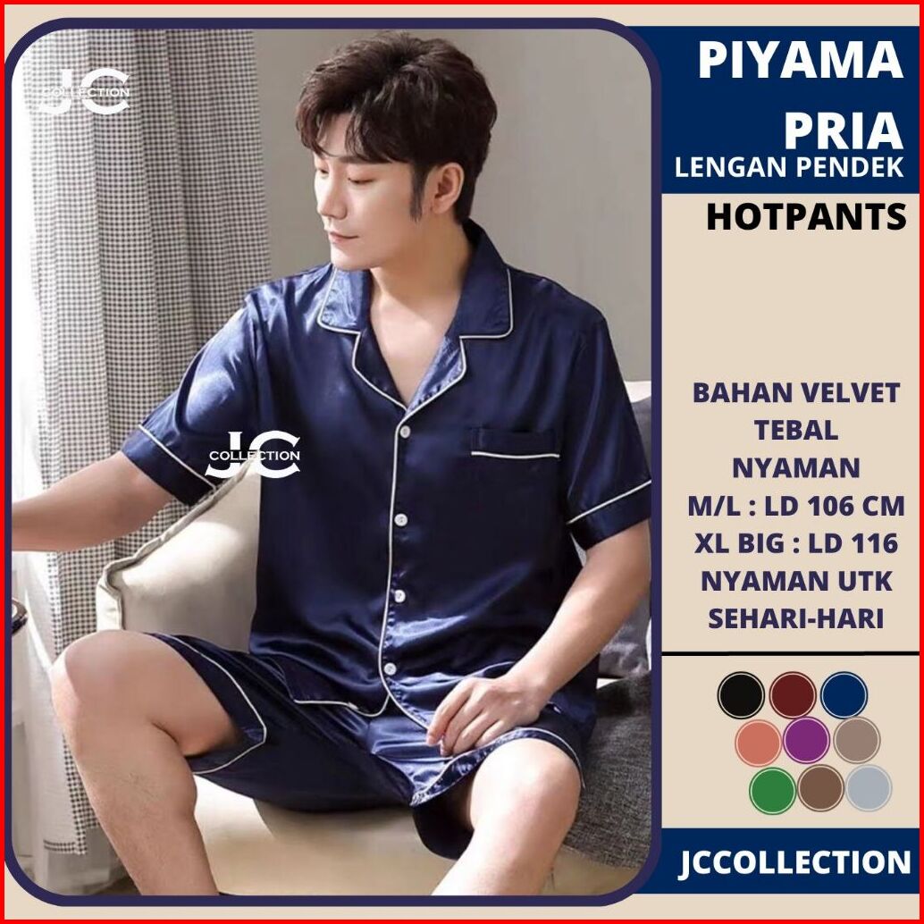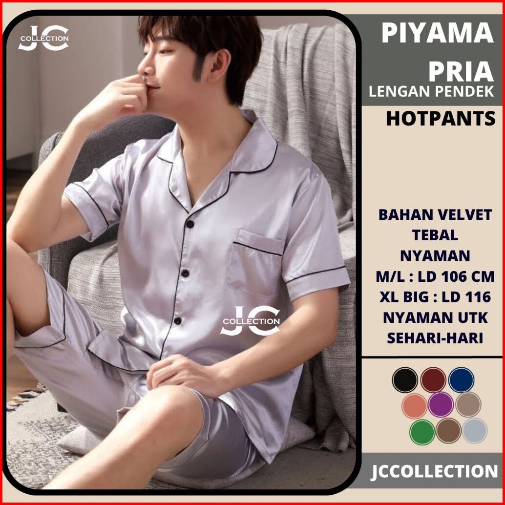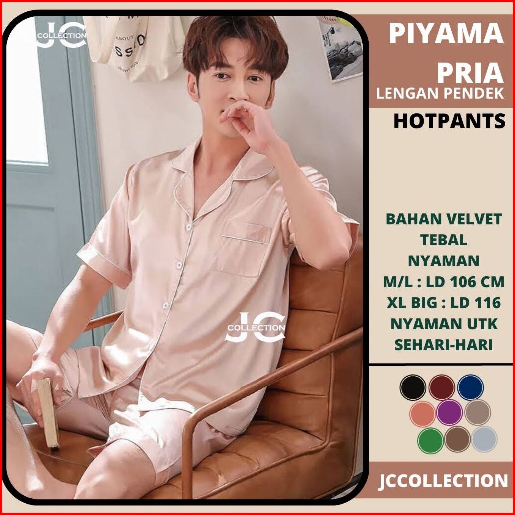 Piyama Pria Lengan Pendek Hotpan - Piyama Satin Pria Hotpan Satuan - Jccollections