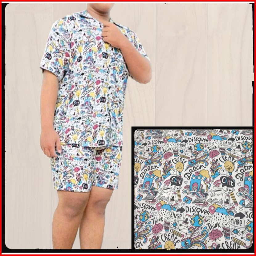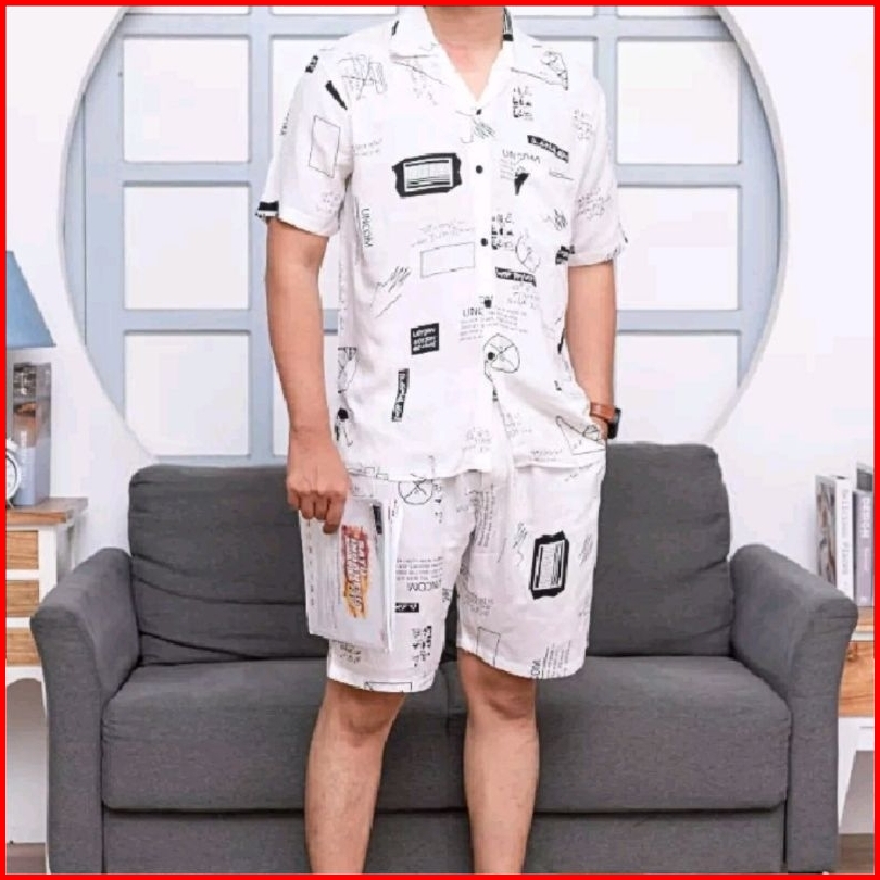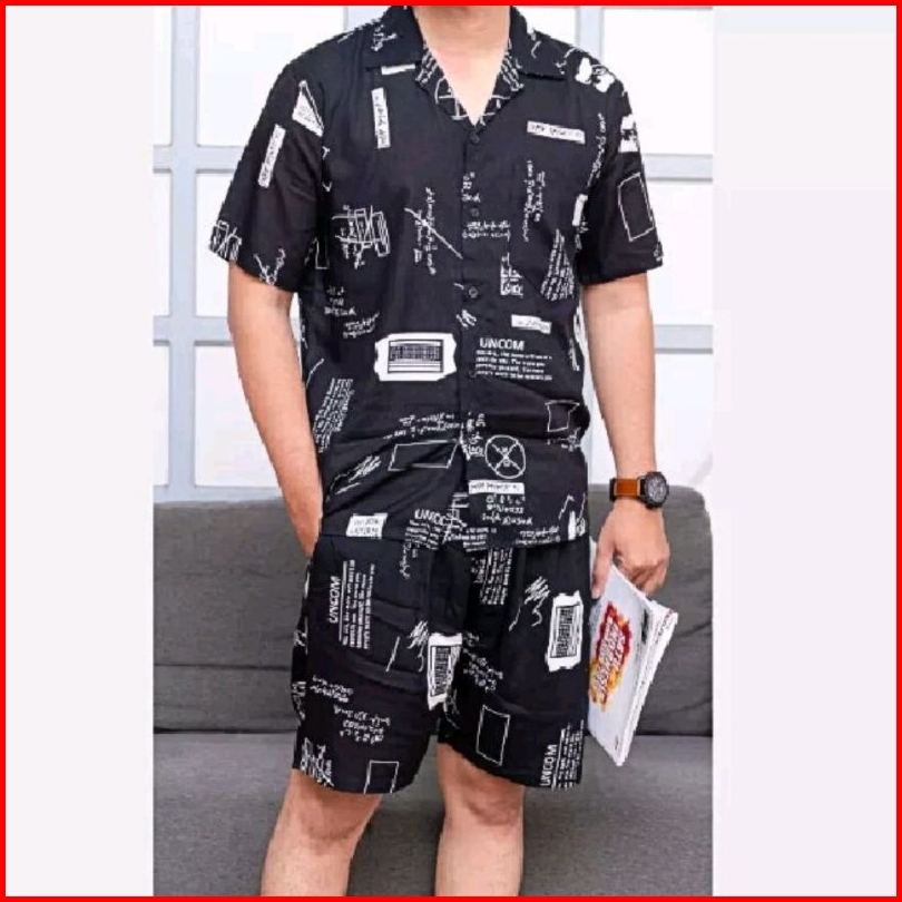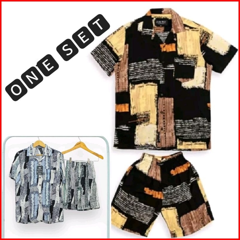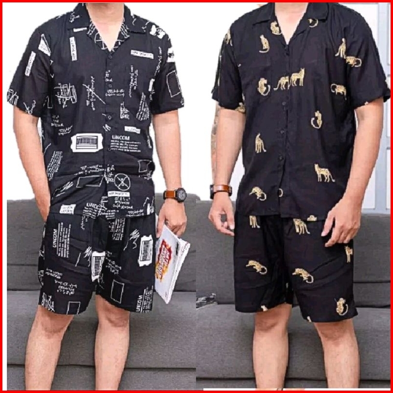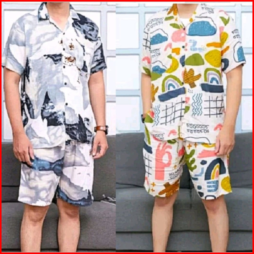One Set Kemeja Motif Pantai Pria Dan Wanita Lengan Pendek Baju Distro One Set Hawaiian