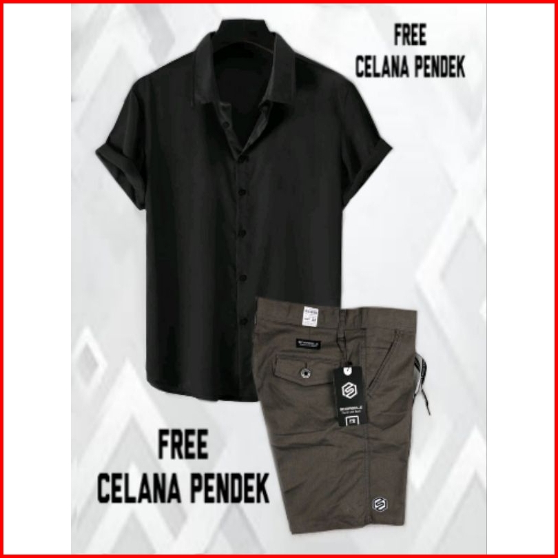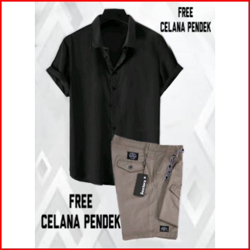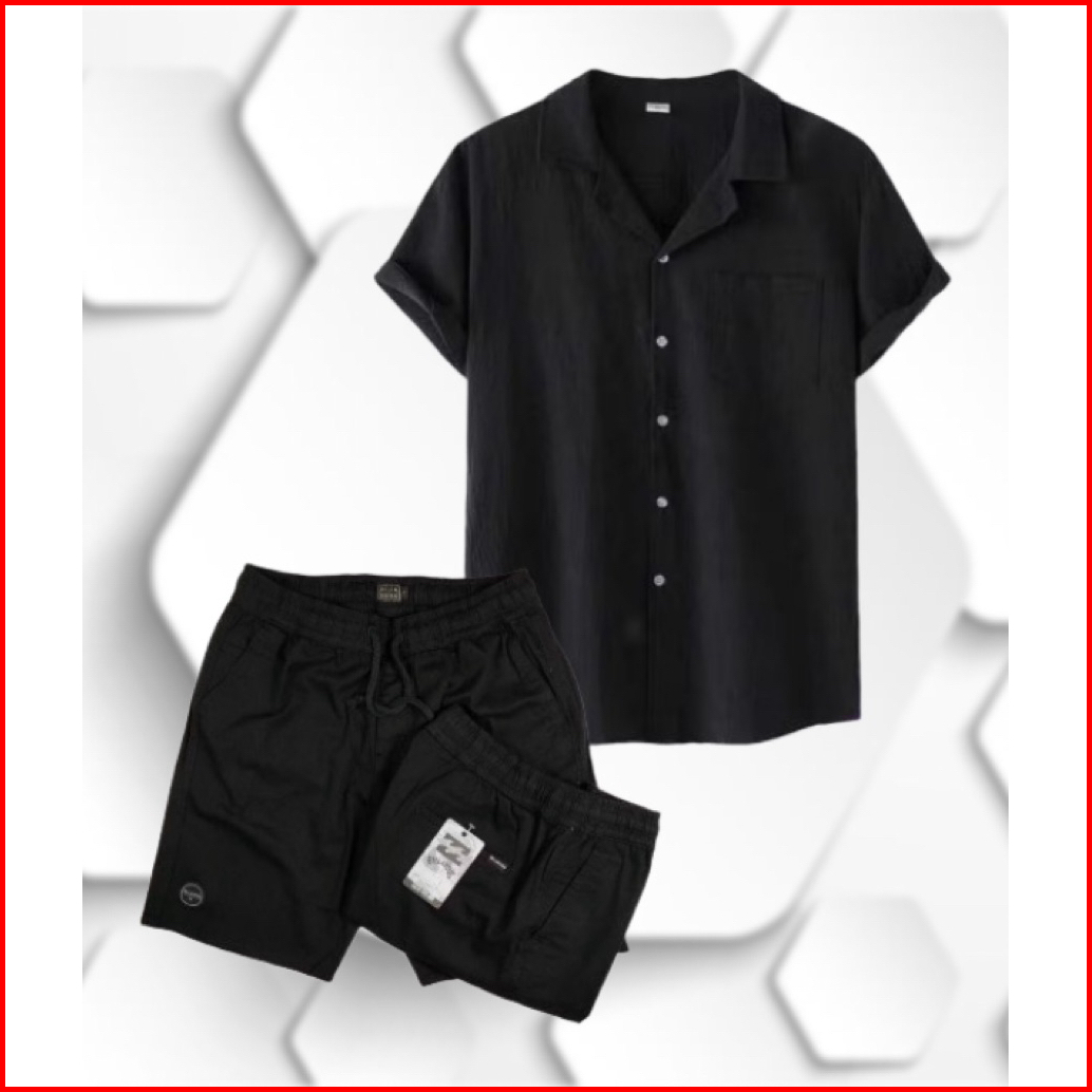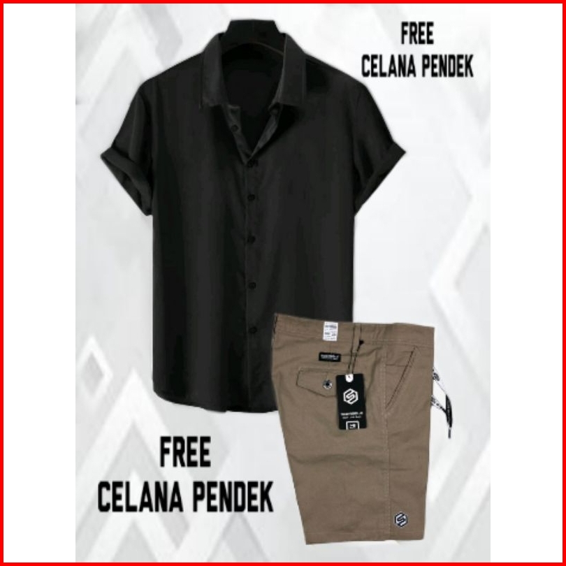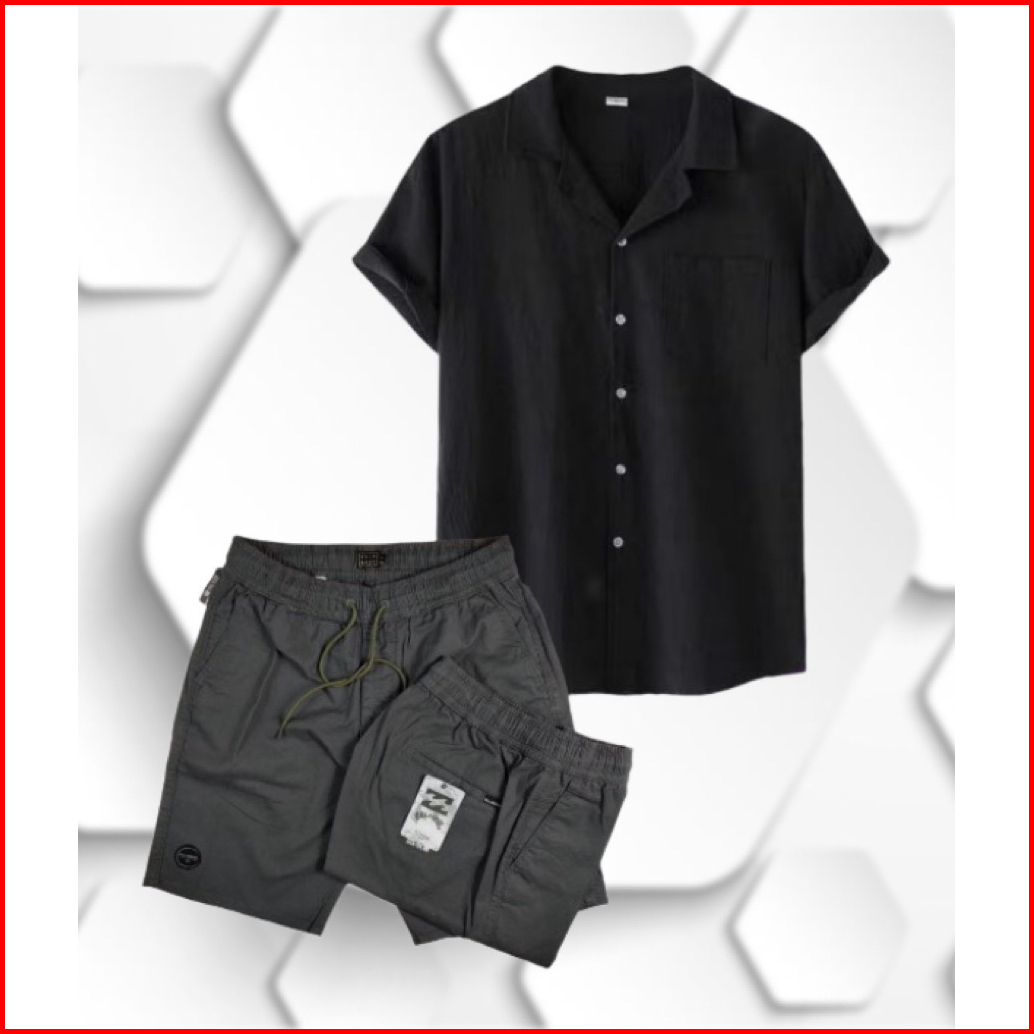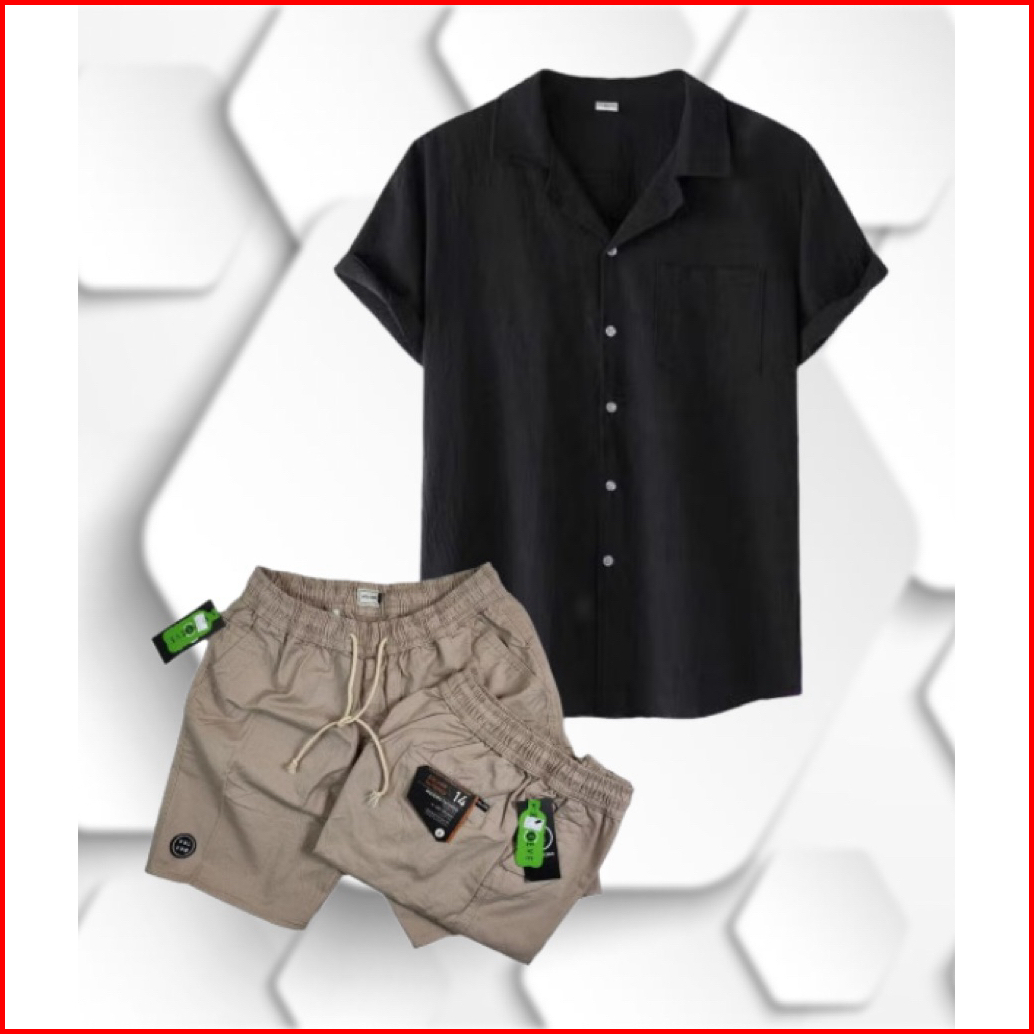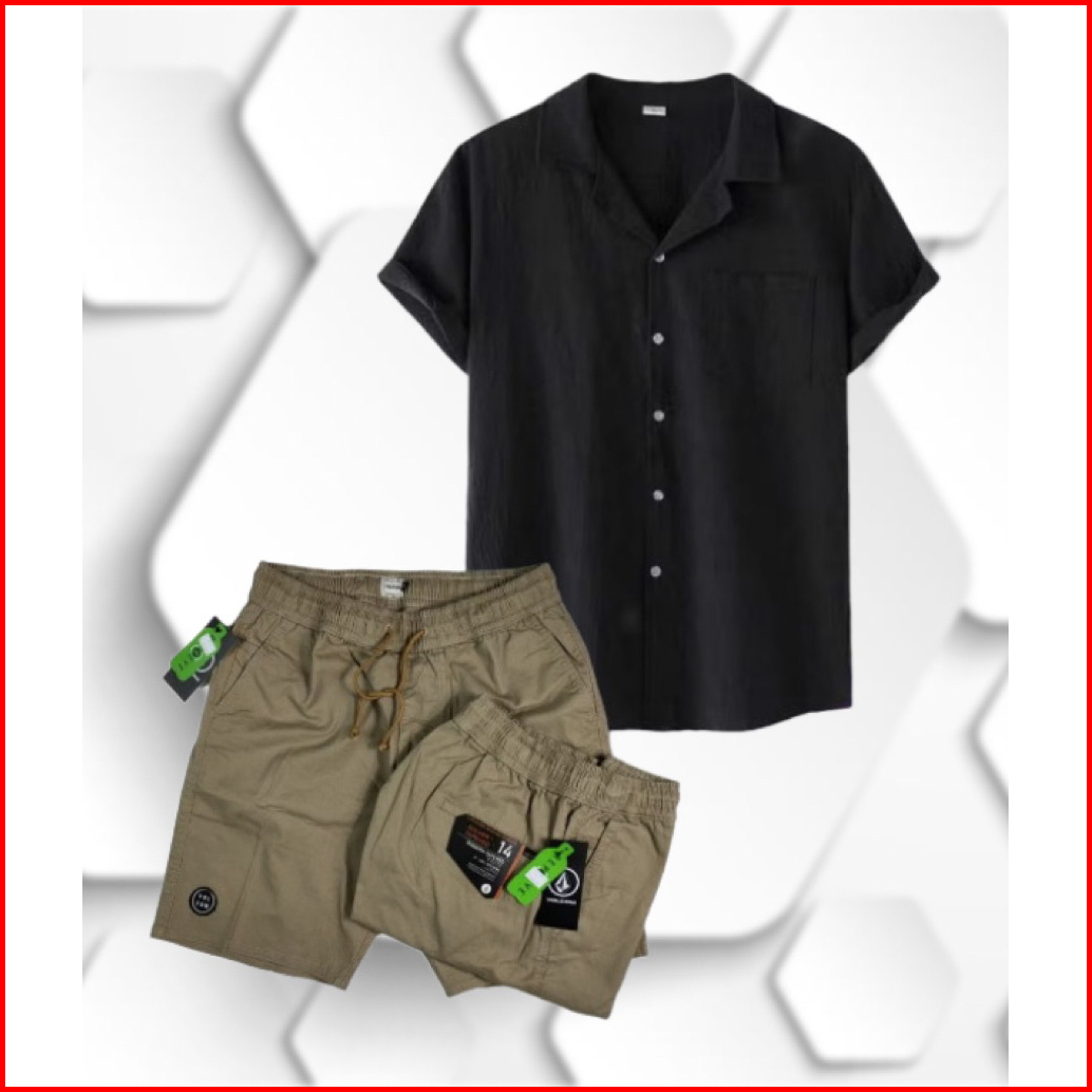 Paket Hemat Setelan Pria Dewasa Terkini Kemeja Pria Polos Lengan Pendek Celana Pendek Pria Dewasa Quality Premium
