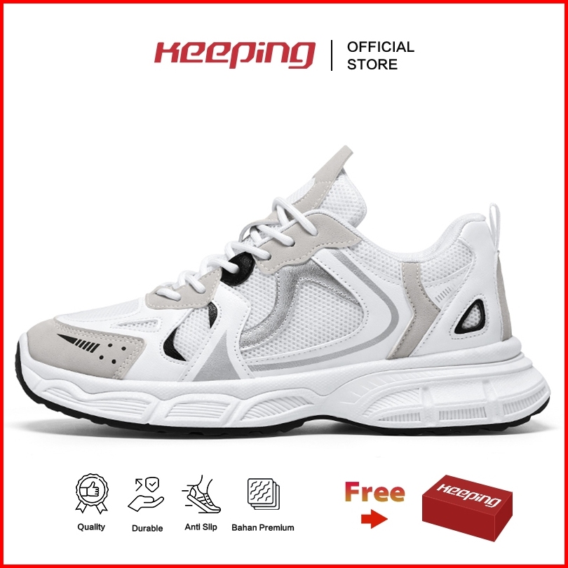 Keeping Sepatu Pria Sepatu Olahraga Putih Sneakers Cowok Jalan Outdoor Casual Sport Shoes Ksr725