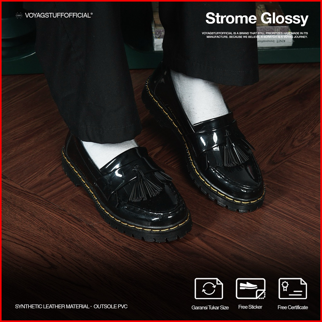 Voyagstuffofficial - Strome Sepatu Penny Loafers Pria Blackglos