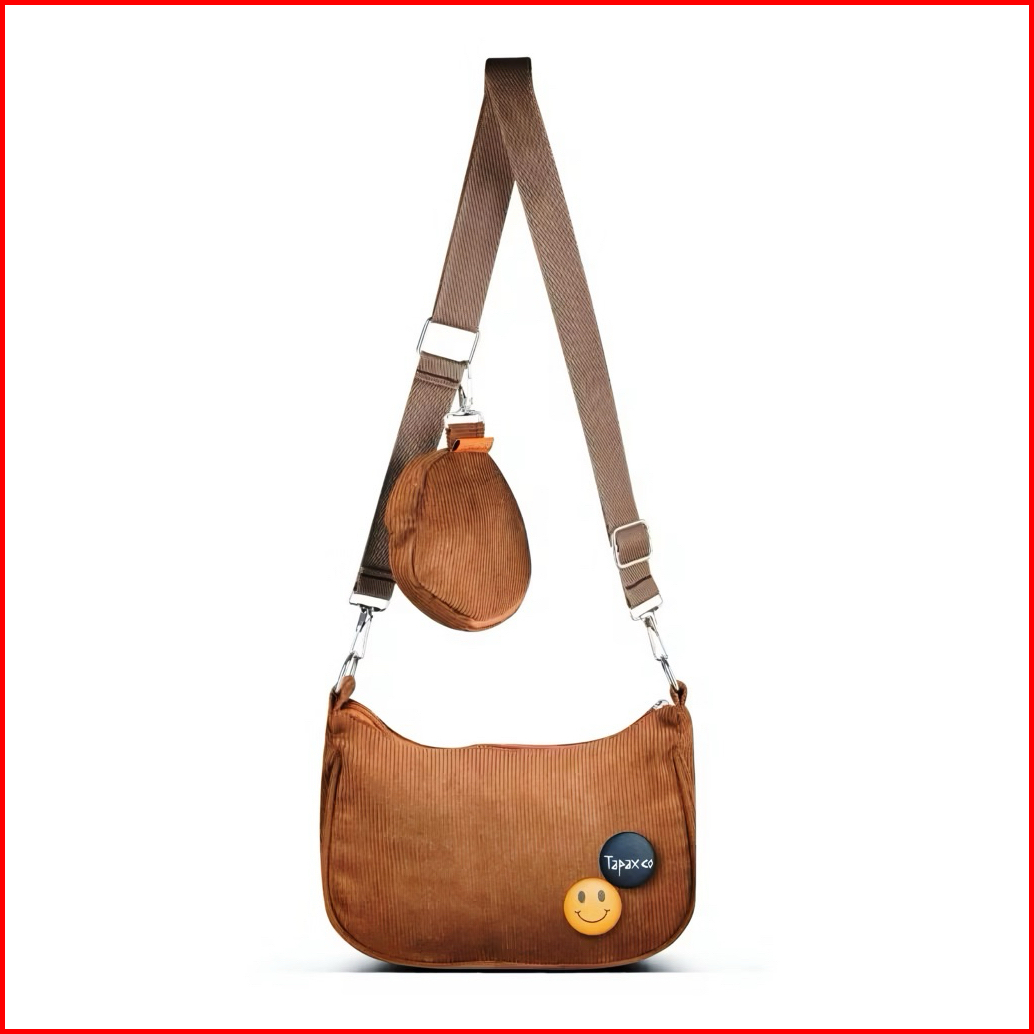 Tapaxco Tas Selempang Corduroy Vashi Tas Slingbag Wanita Unisex Free 2 Bross Dan Bag Charm Tapax