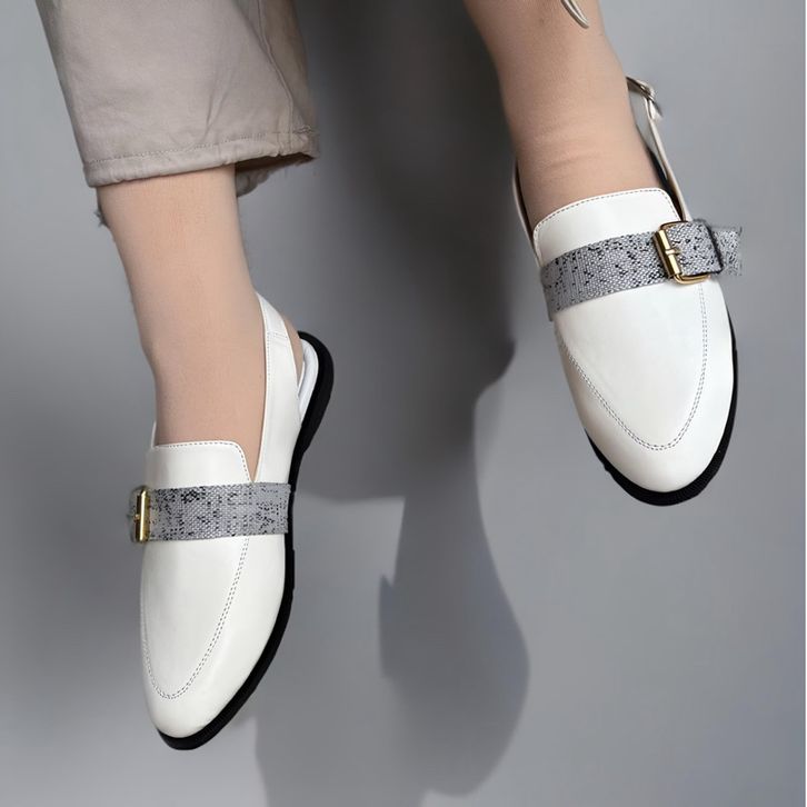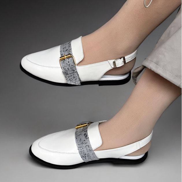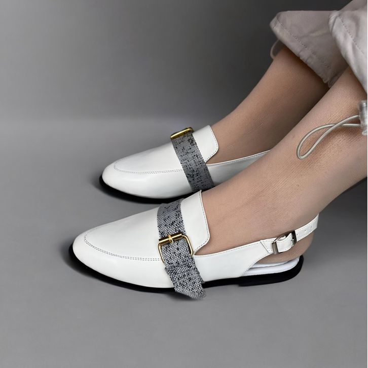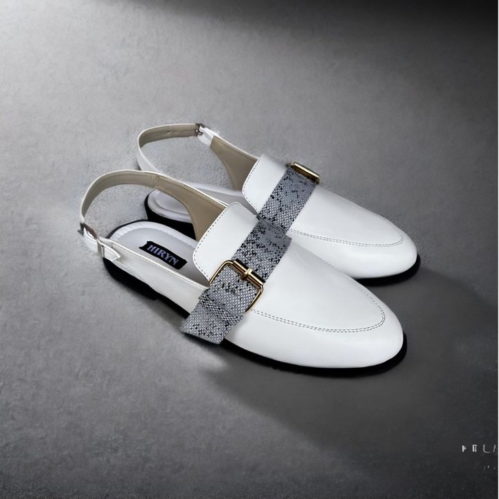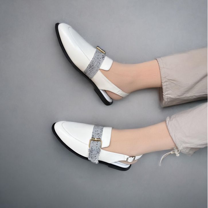 Sepatu Sandal Mules Flatshoes Wanita Heels Hak 2 Cm Miamy Tali White HIRYN