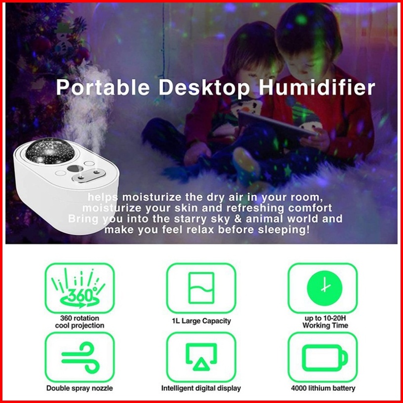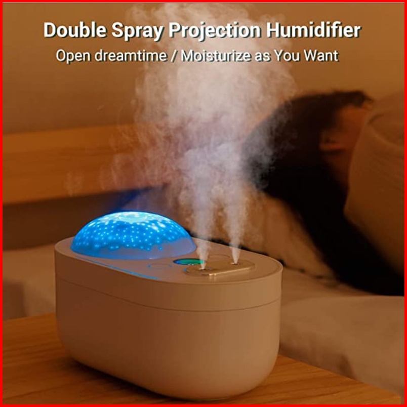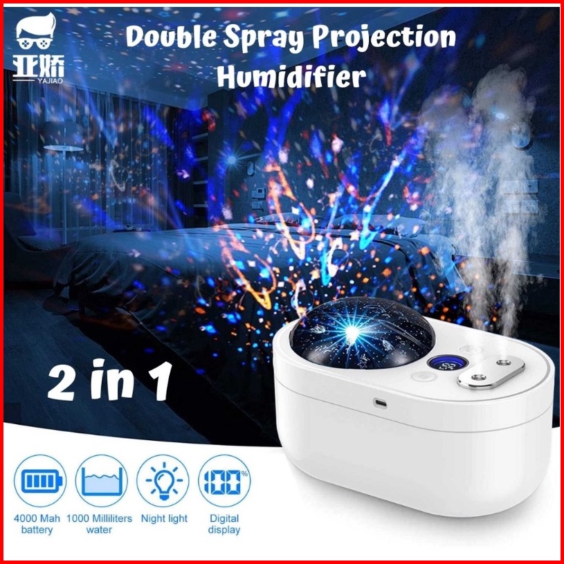 Air Humidifier 1000ml Aromatheraphy Double Spray Cool Mist 2 In 1 Proyektor Night Lamp