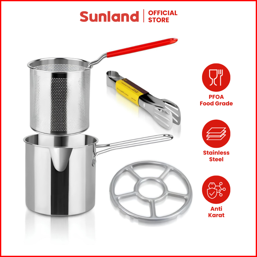 Sunland Panci Multifungsi 4 In 1 Multi Deep Fryer Set Panci Penggorengan Rebus Stainless Steel Saringan Capitan Klip Mak