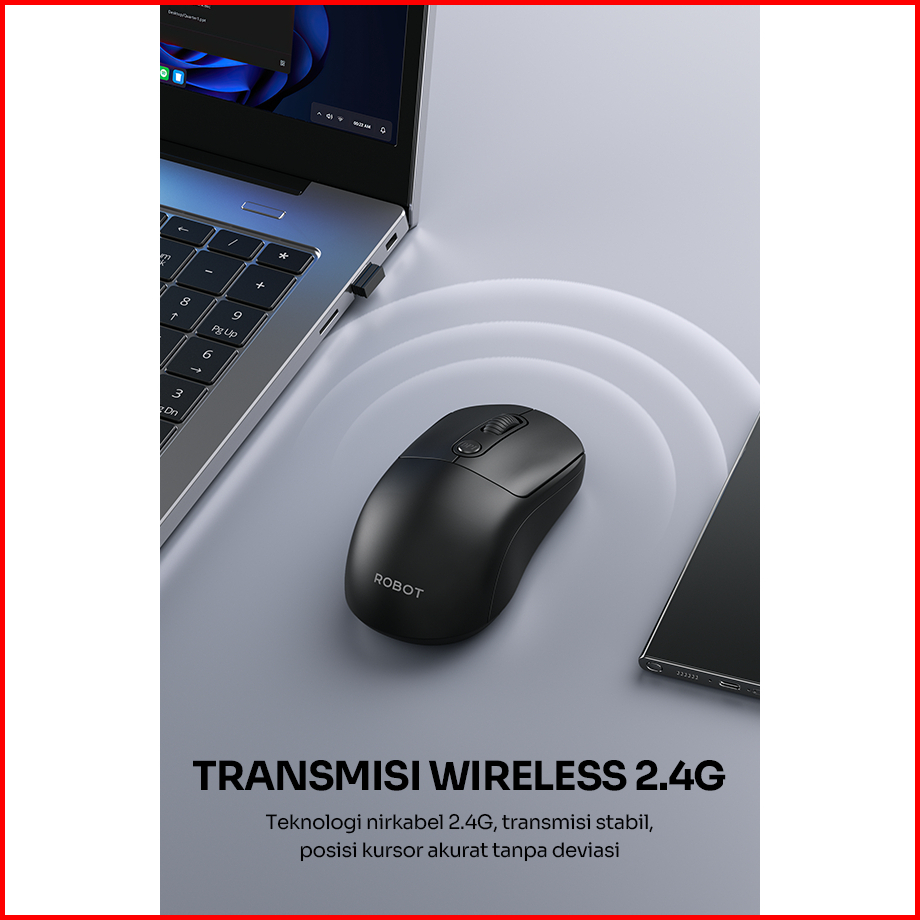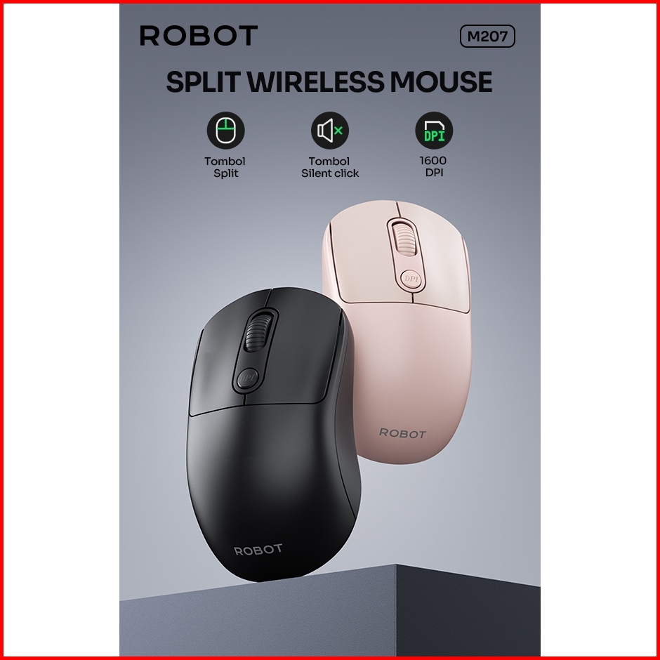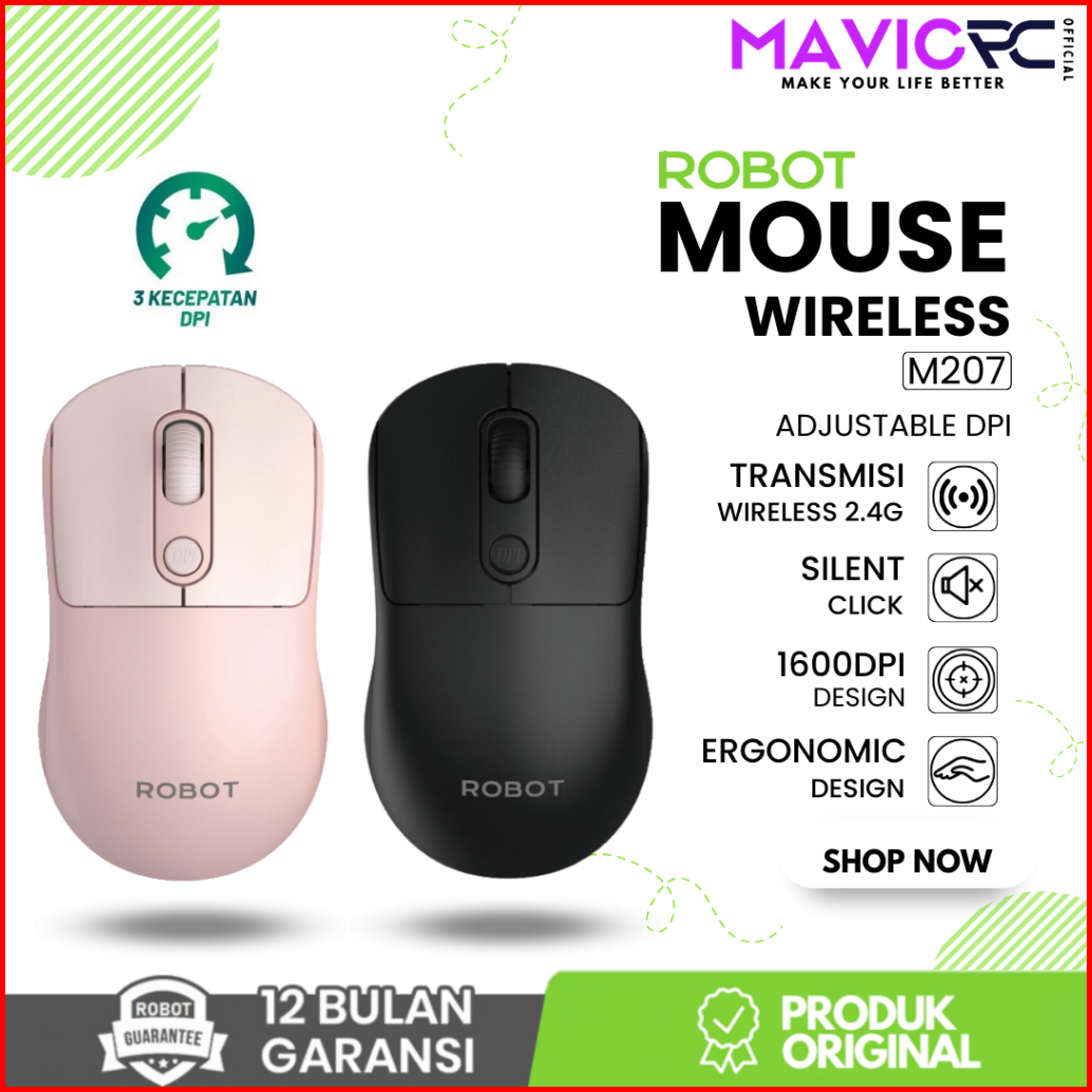 Robot M207 Silent Mouse Wireless 2.4ghz Optical 1600dpi Kursor Akurat Gaming Cocok Untuk Pc Laptop Original - Garansi Re
