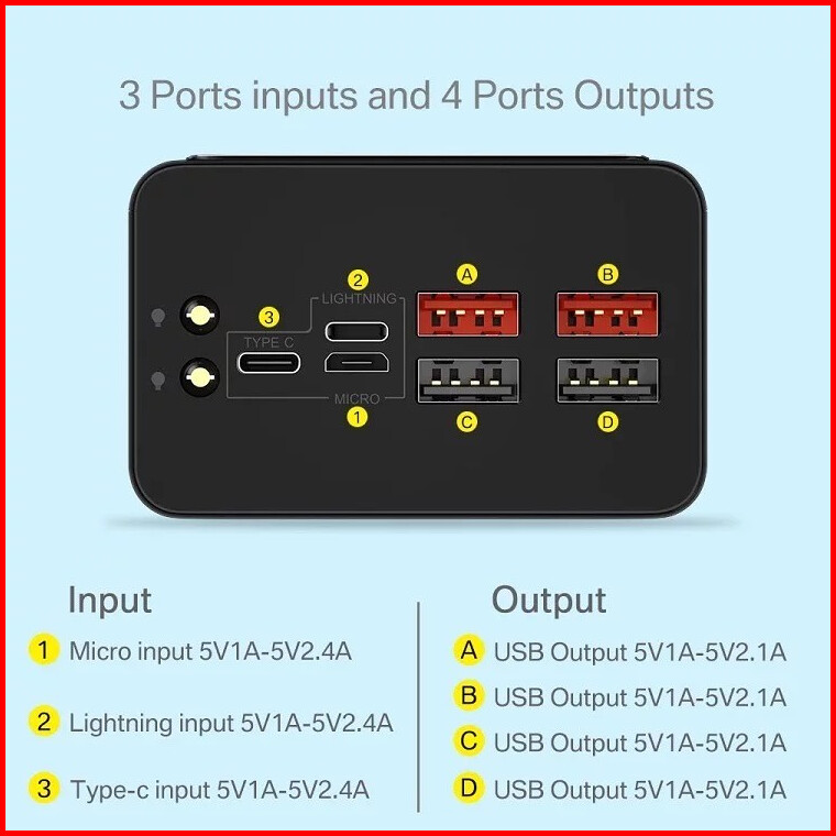 60000mah Powerbank Fast Charging Full Capacity 4 Usb Charge Ports Pd Fast Charging Power Bank 60000 Mah