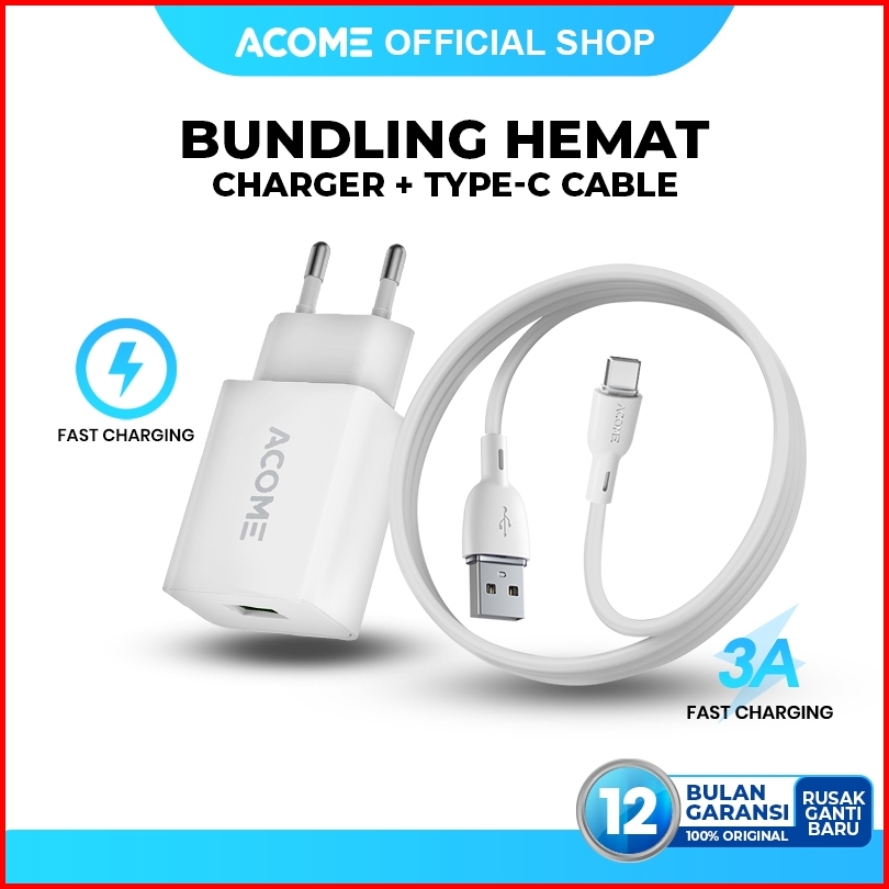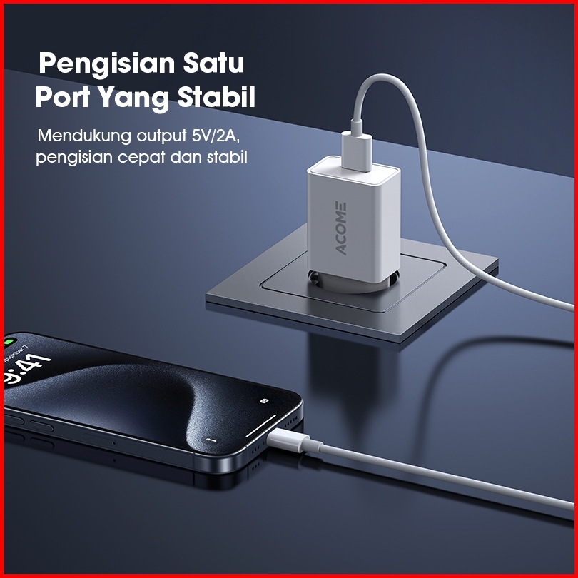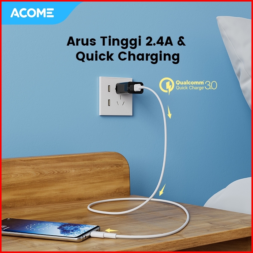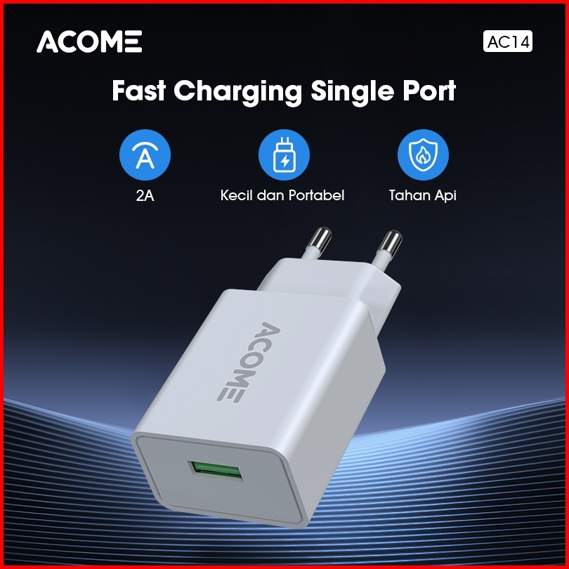 Acome Charger Ac14 Single Port Usb Fast Charging 2a Original Acome Data Cable Seri Ad Micro Usb Type C Lightning Origina