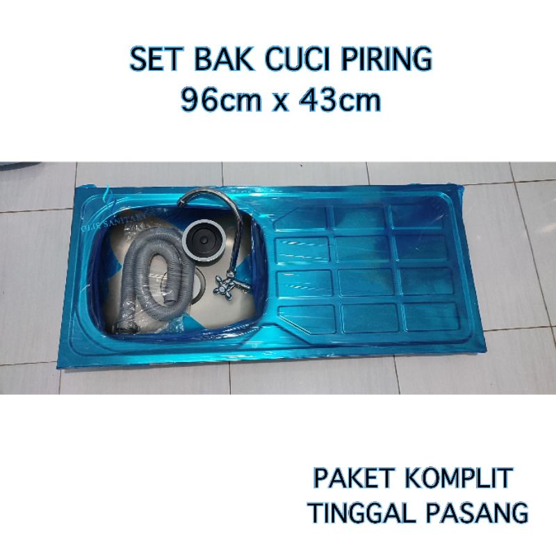 CICIL TANPA DP Bak Cuci Piring + Afur Wastafel Stainless / 96CM x 43CM / Kitchen Sink Dapur Single + Set Komplit