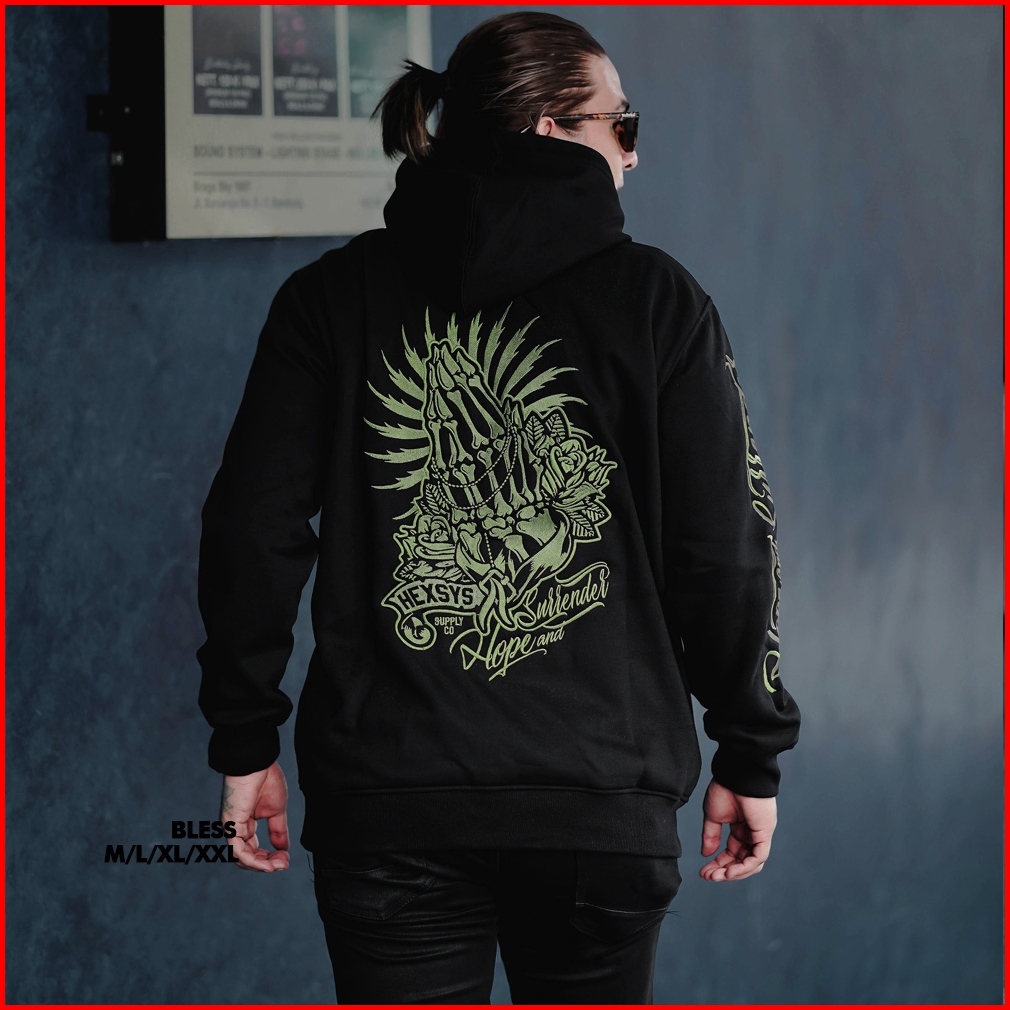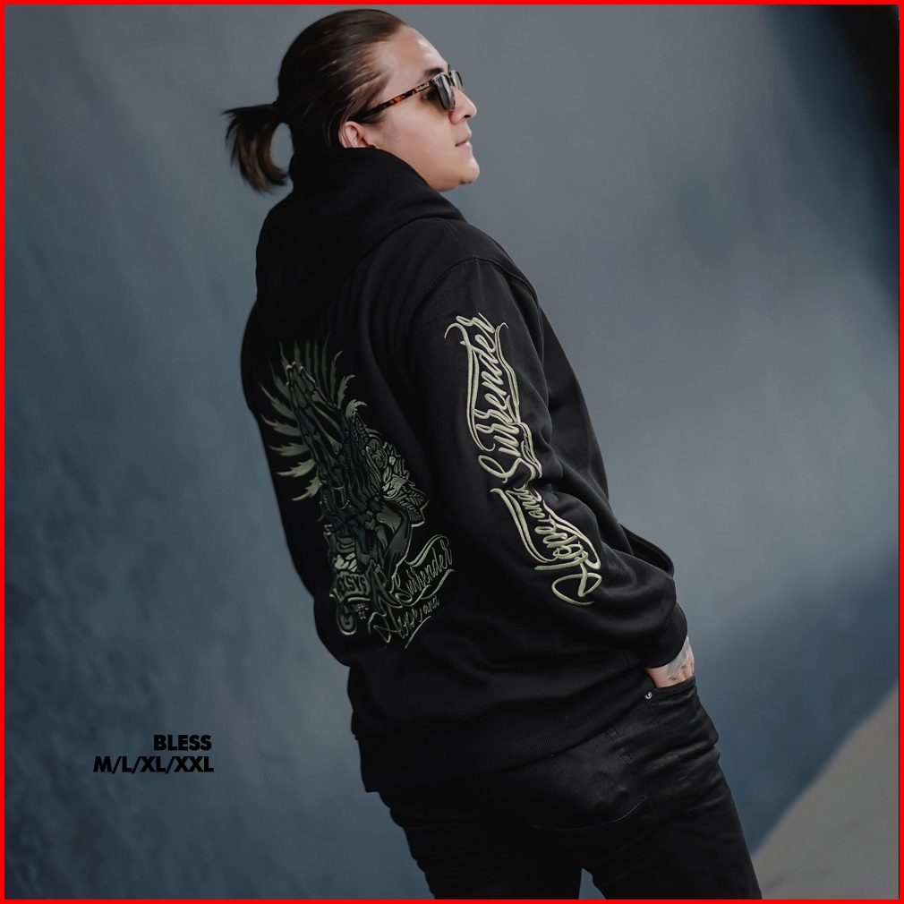 Bossque X Hexsys - Bless Hoodie Bordir Mythology Jumper Sweater Pria Racing Jaket Hoodie Jaket Pria