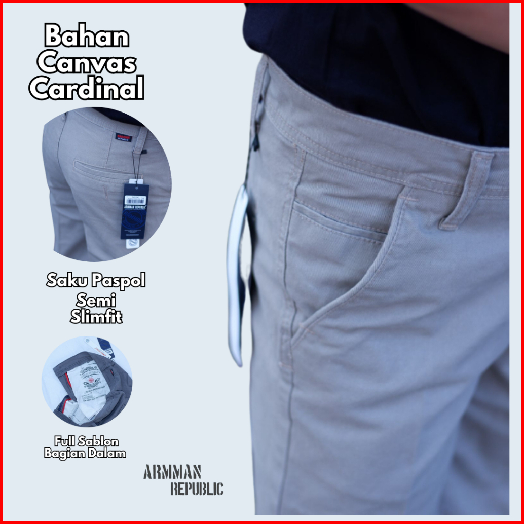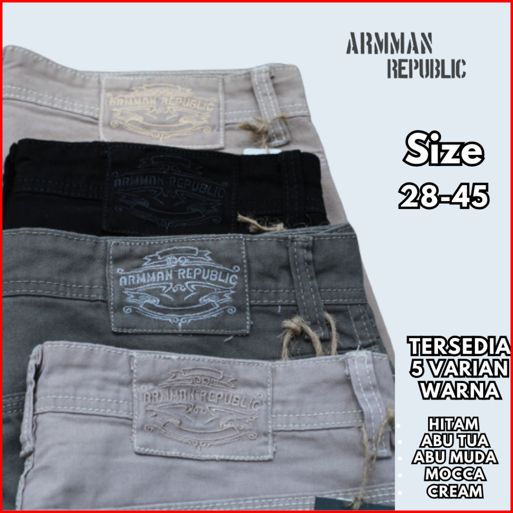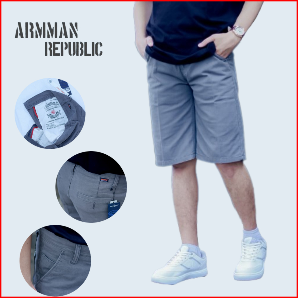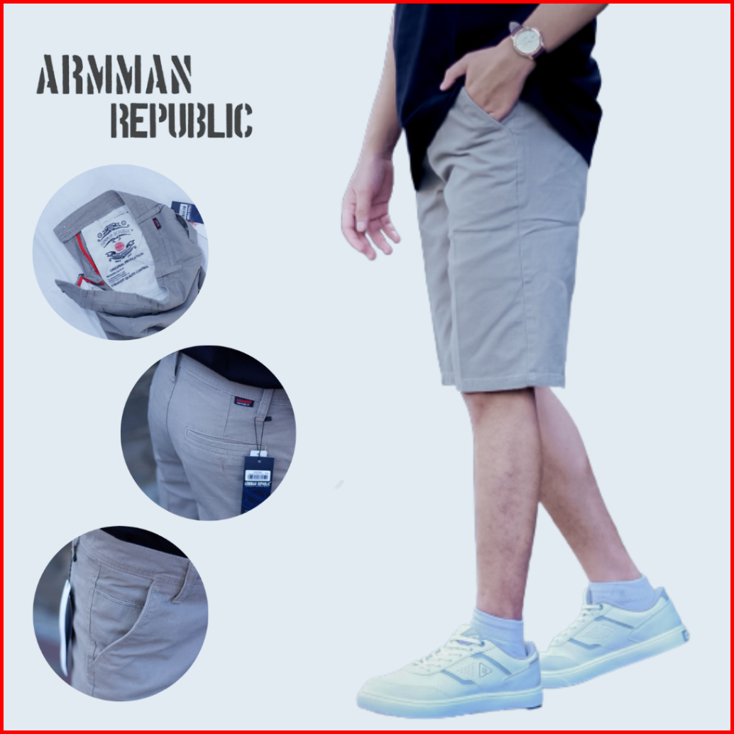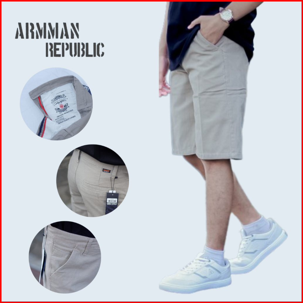 Armman Republic - Celana Pendek Chinos Pria Saku Paspol Semi Slimfit Size 28-45