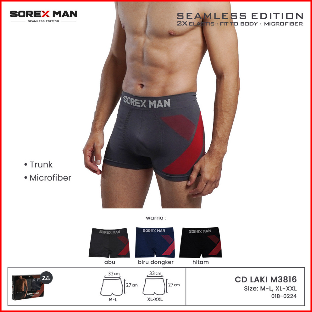 2 Pcs Sorex Man Seamless Boxer Pria Microfiber Trunk Cd Cowo M3816 M 3816