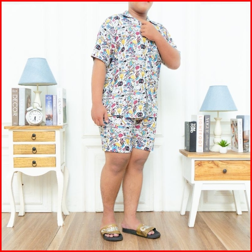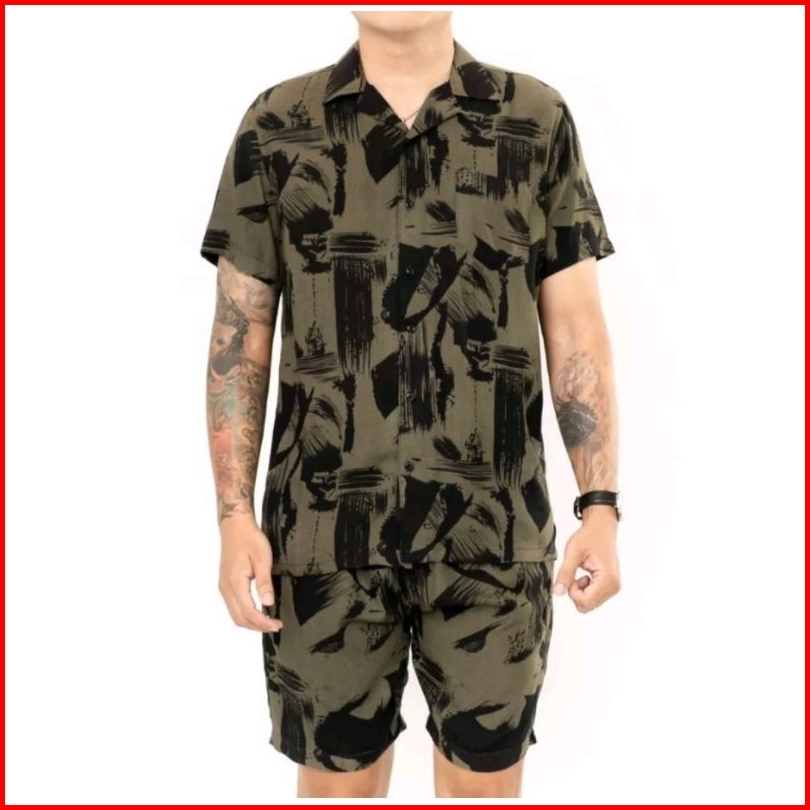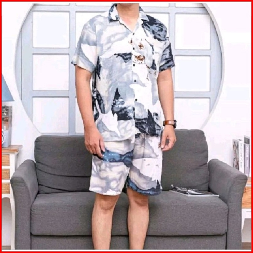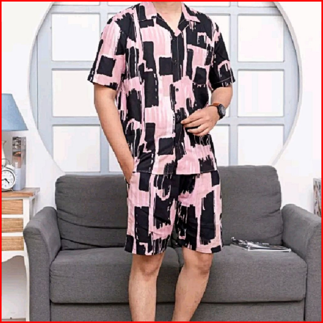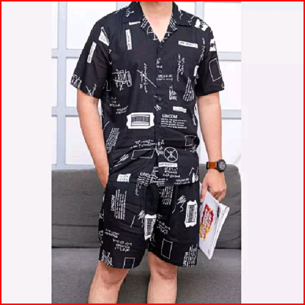Set Kemeja Hawaiian Printing Kemeja Oneset Pajamas Pria Oneset Rayon Hawaian Set Oneset Amarilo