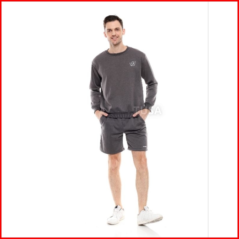 Satu Stel Oneset One Set Crewneck Broadshort Premium Unisex Pria Wanita