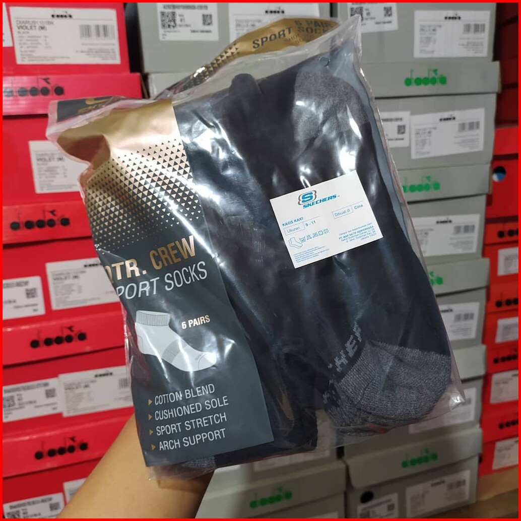 Kaos Kaki Skechers Quarter Sock Black Grey Original