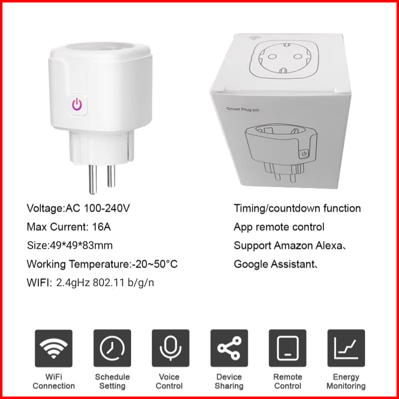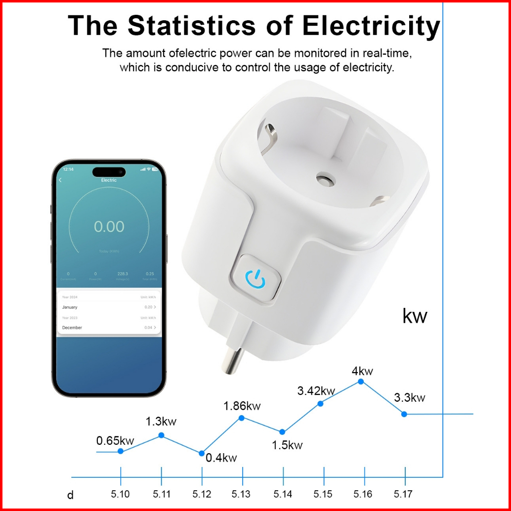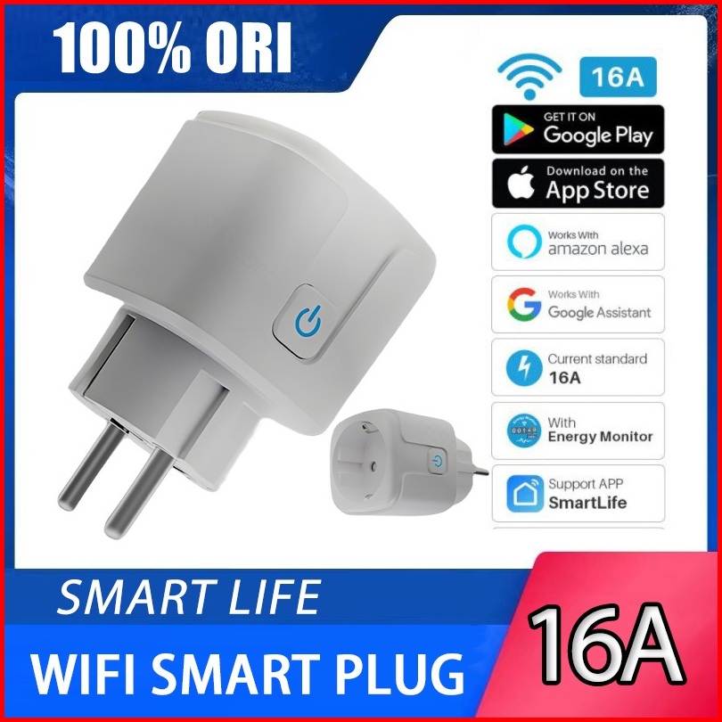 Wireless Wifi Smart Plug Socket 16a With Colokan Energy Monitoring Statistic Smart Home Colokan Stop Kontak Timer Coloka