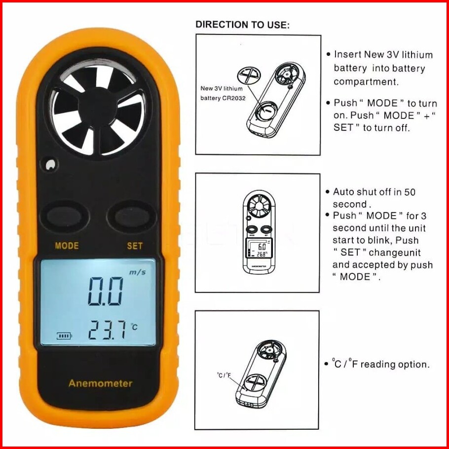 Digital Wind Anemometer Tester Pengukur Kecepatan Angin Anemo Meter Velocity Tester