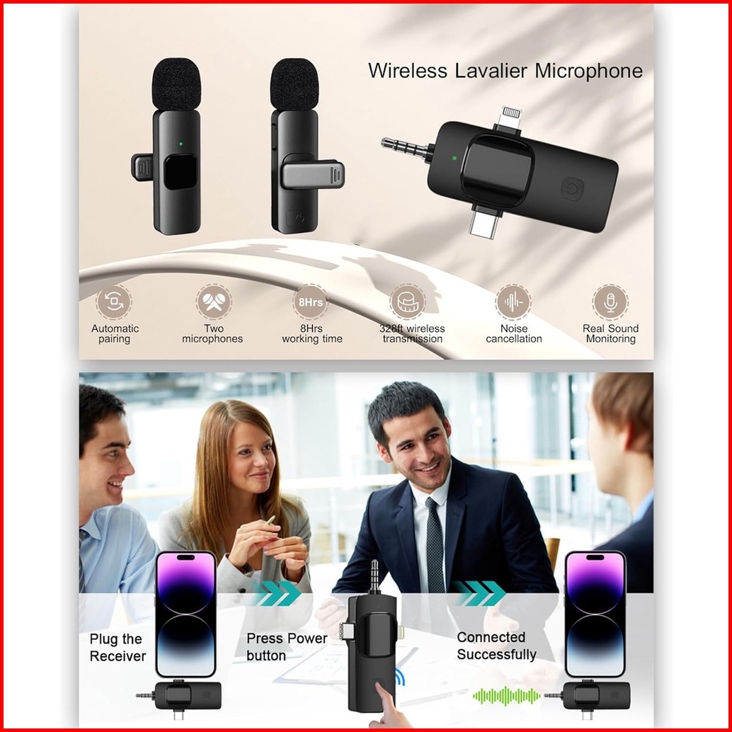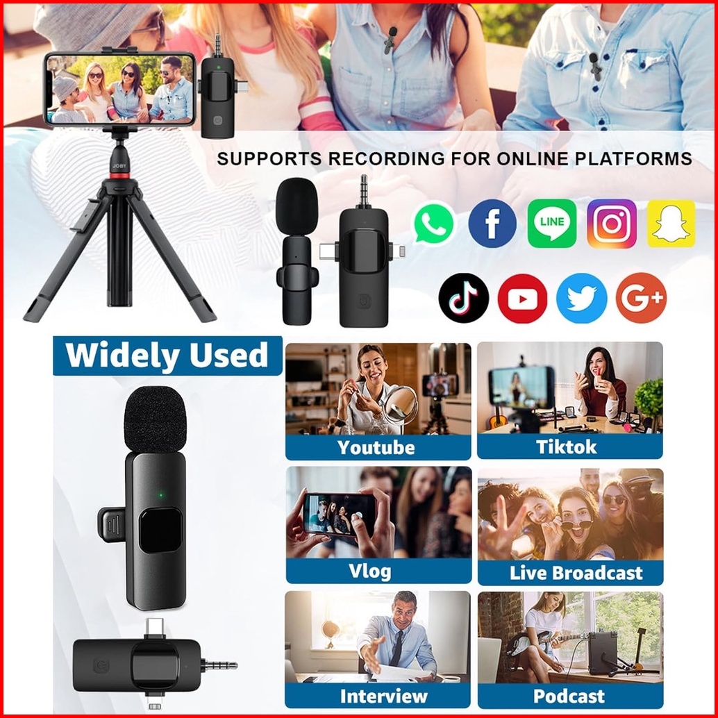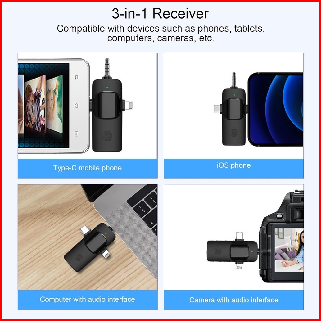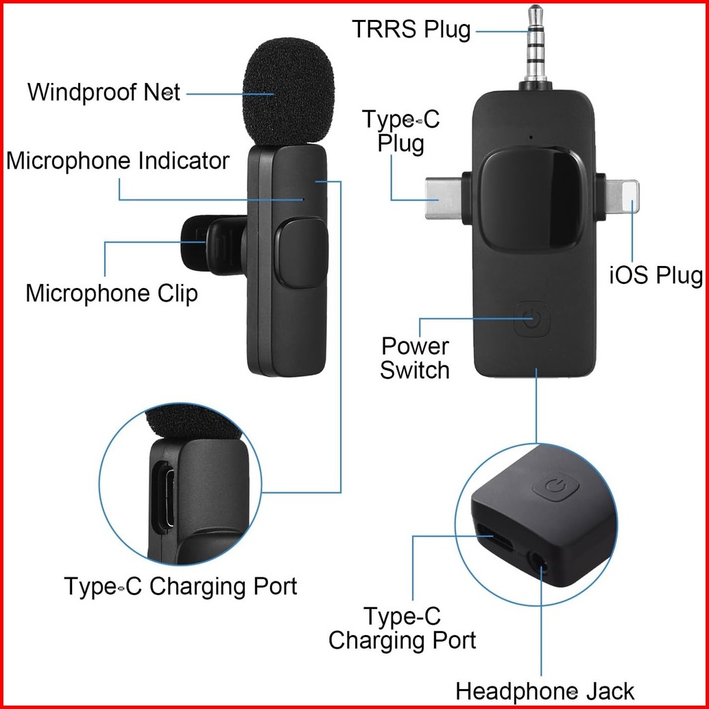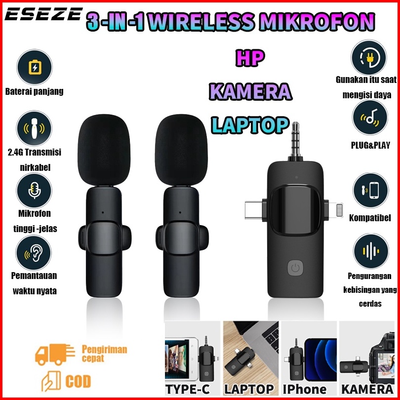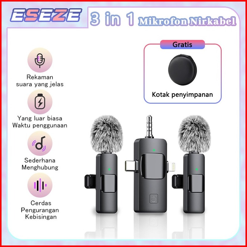 Eseze 3 In1 Mikrofon Nirkabel Untuk Iphone Type-c 3.5mm Nirkabel Lavalier Mikrofon 2.4g Dengan Siaran Langsung Mic Profe