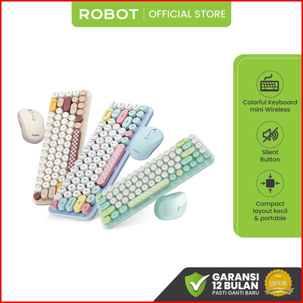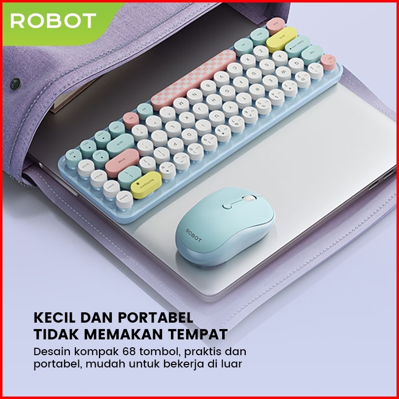 Robot Keyboard Dan Mouse Set Wireless 2.4g Keyboard Combo Design Unik Lucu Colorful Tipe Km3600 Keyboard Kantor Stylish