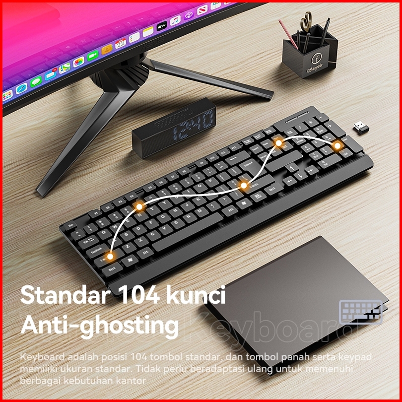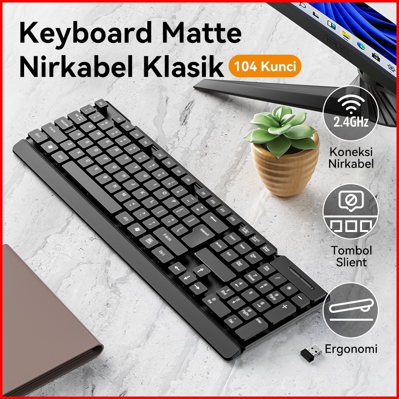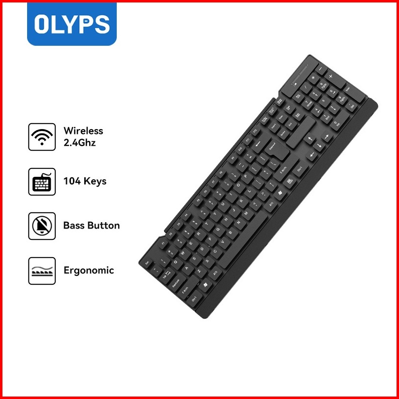 Olyps Keyboard Wireless 2.4ghz Portable 104 Keys Full Size Laptop Tanpa Kabel Ergonomis Desain