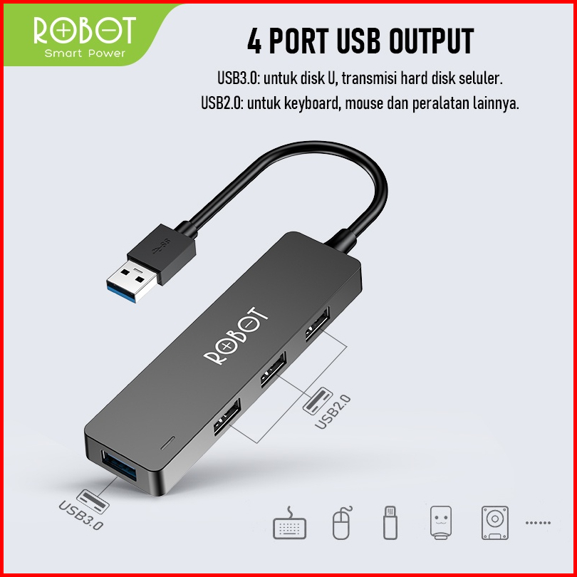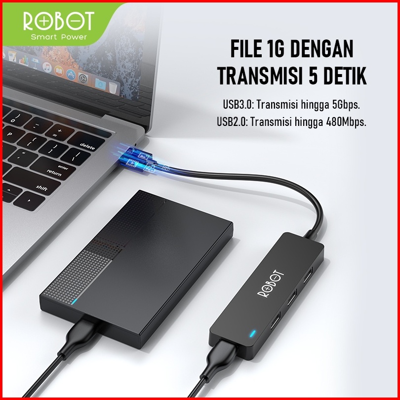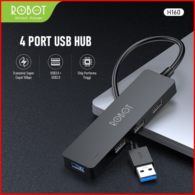 Robot Usb Hub Fast H160 4 Ports Usb 2.0 Usb 3.0 High Speed 5gbps Chip Performa Tinggi Original Garansi Resmi 1 Tahun