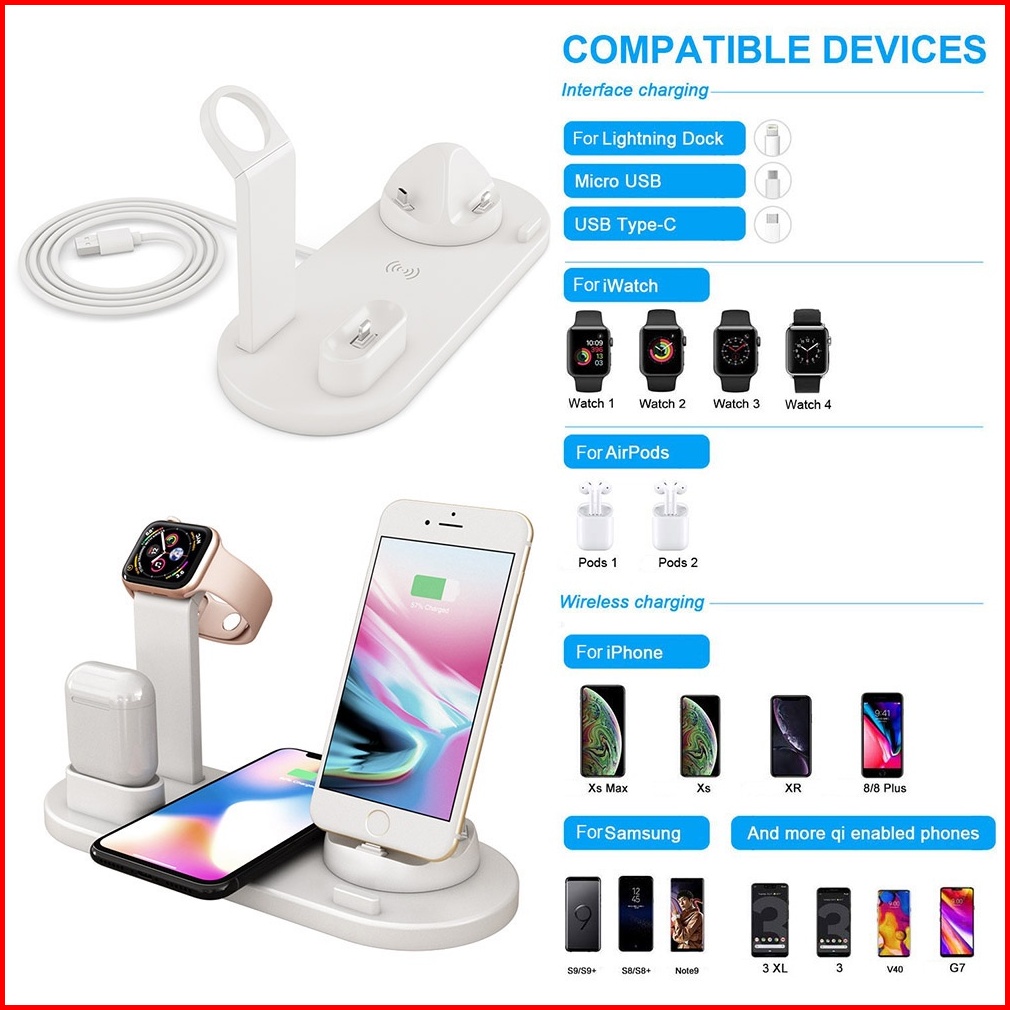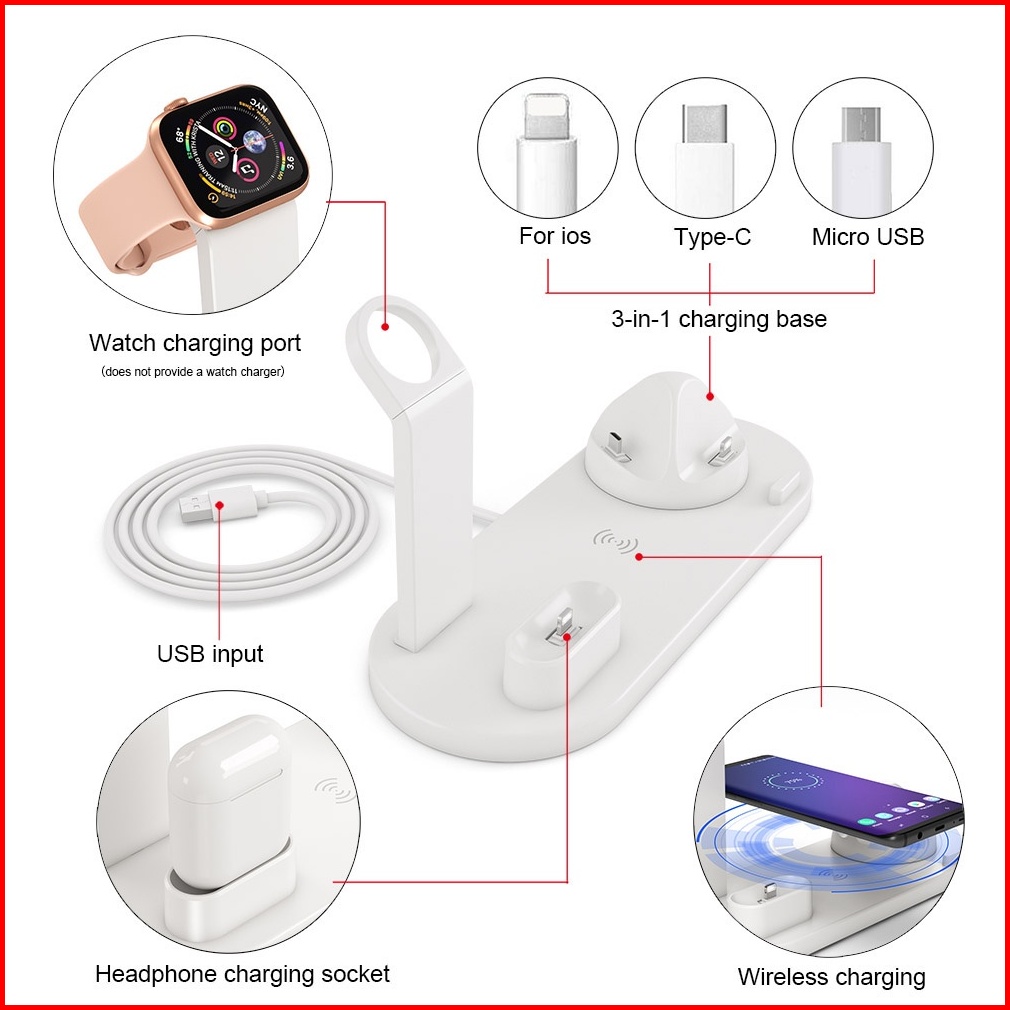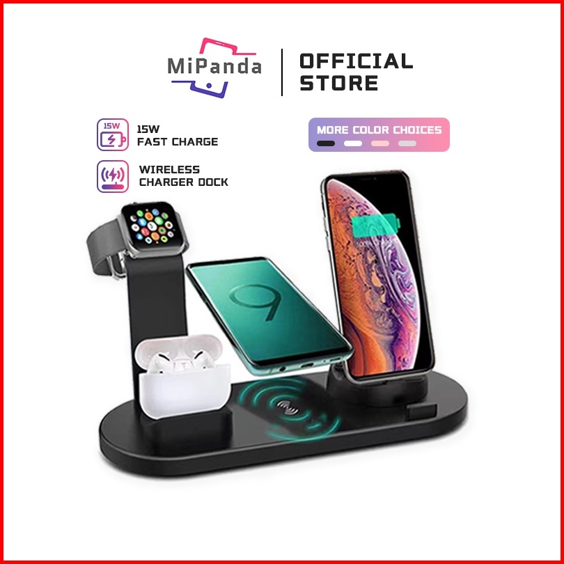 Mipanda 6 In 1 Wireless Charger 15w Fast Charging For Apple Watch Airpods Charger Micro Usb Type C