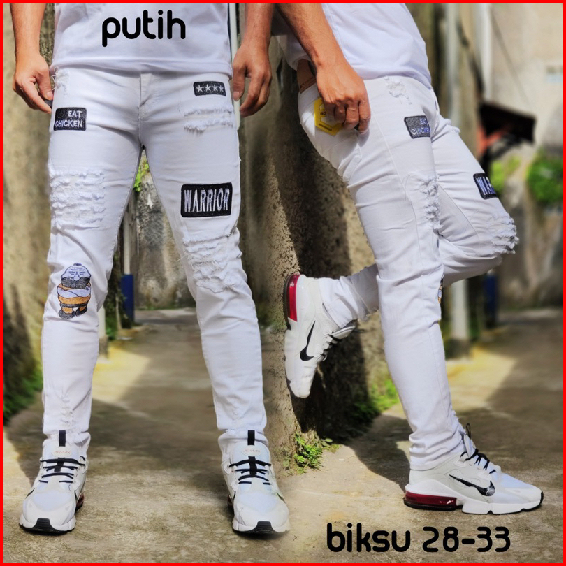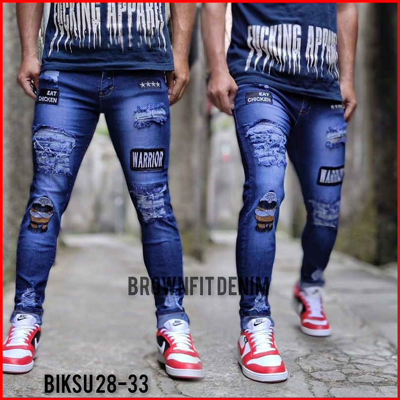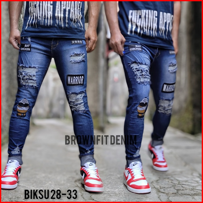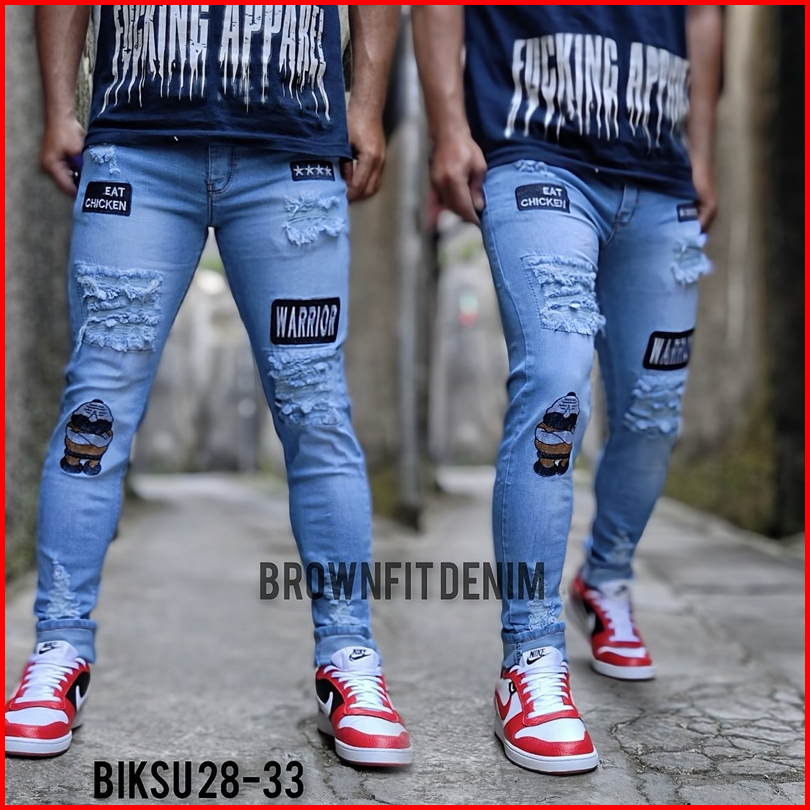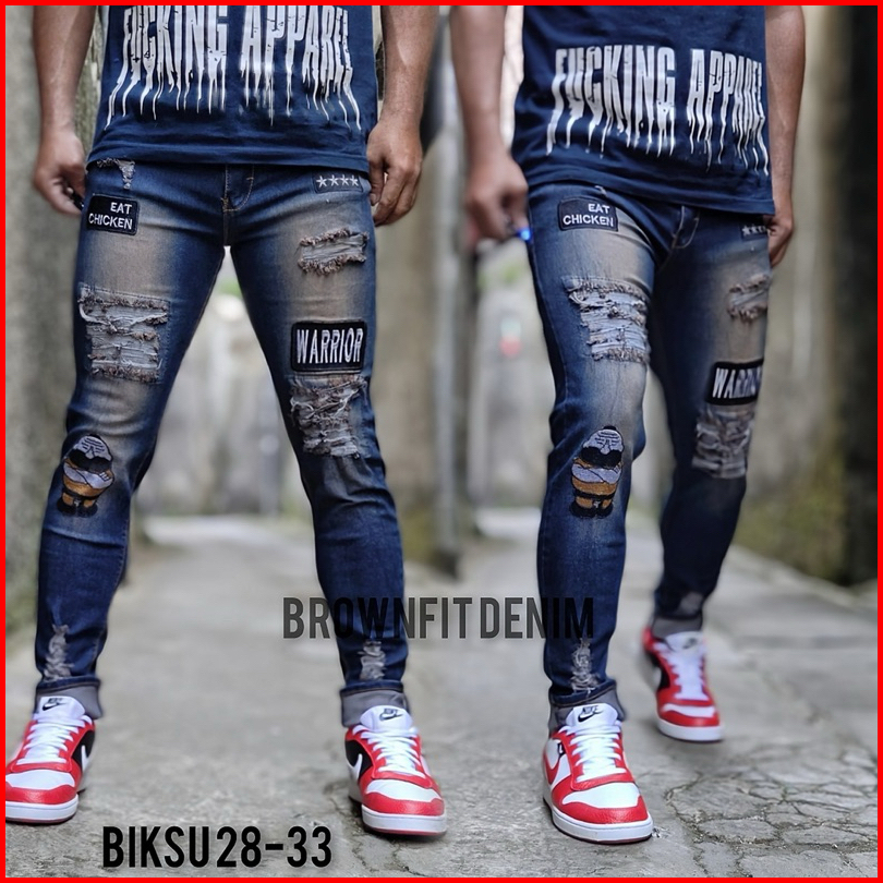 Celana Pria Jeans Ripped Bikers Sobek Bordir