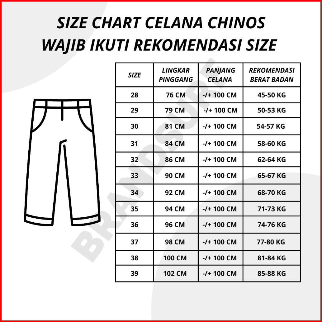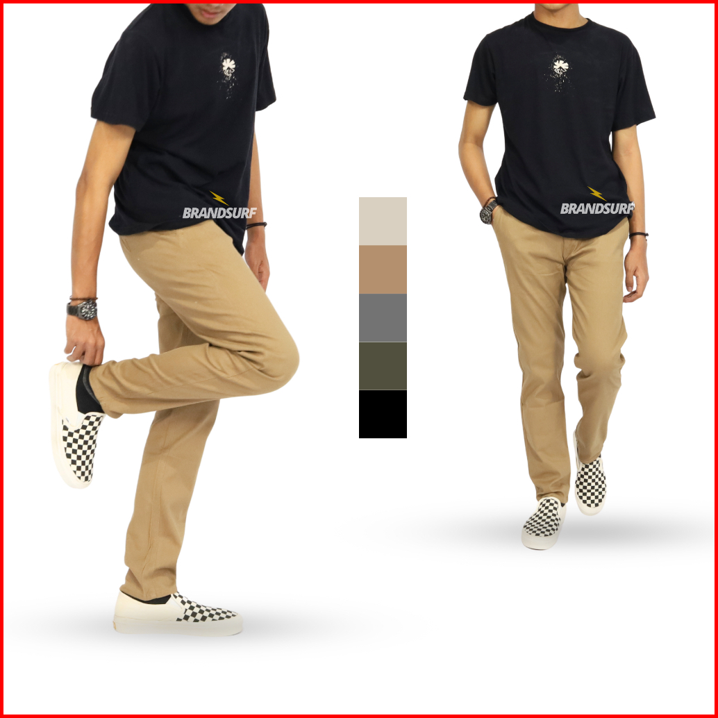 Celana Chino Panjang Slimfit Brandsurf Bahan Katun Twill Strach Size 28-39