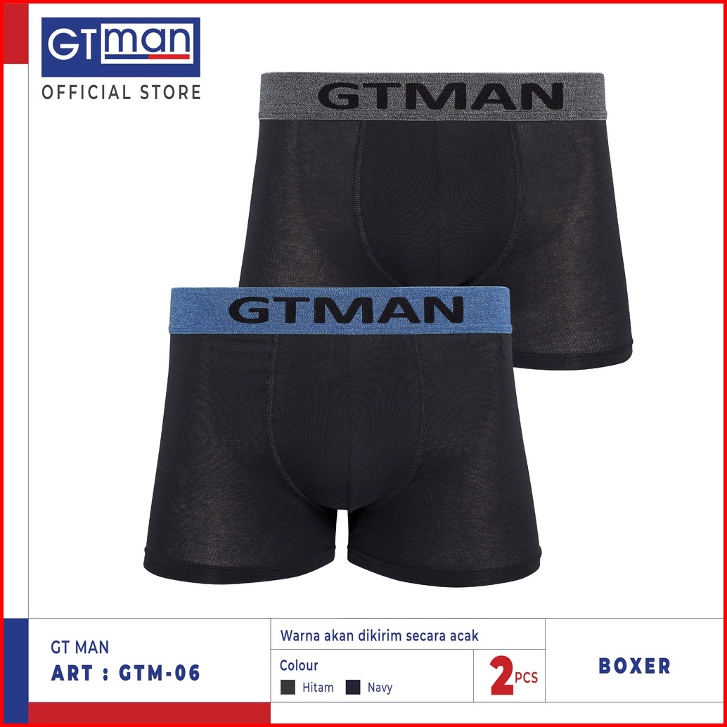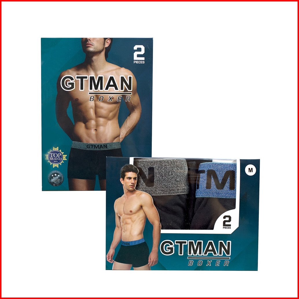 Gt Man - Boxer - Isi 2 Pcs - Gtm06 Bx - Bahan Katun Elastis - Celana Dalam Boxer Pria Dewasa Remaja Cowok - Nyaman Polos