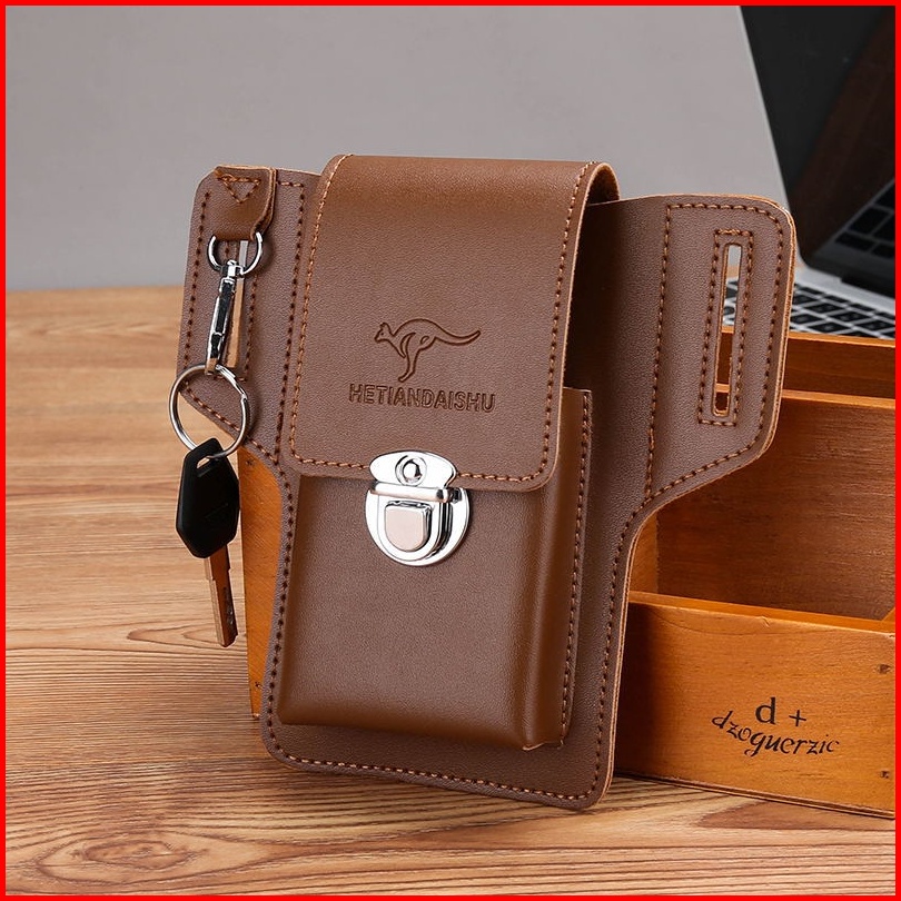 Tas Pinggang Kulit Pria Pu Sintetis Black Brown