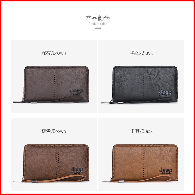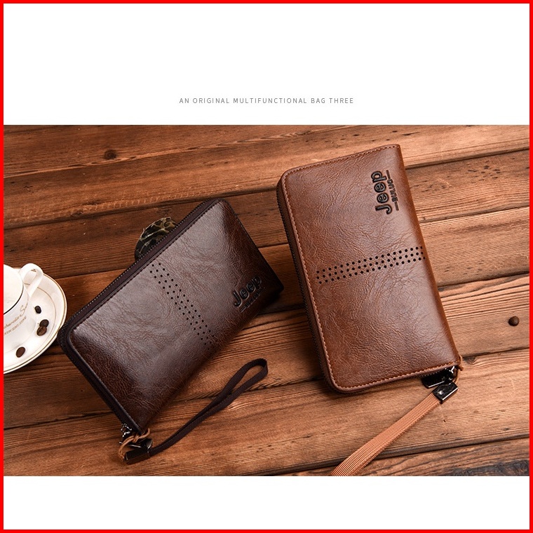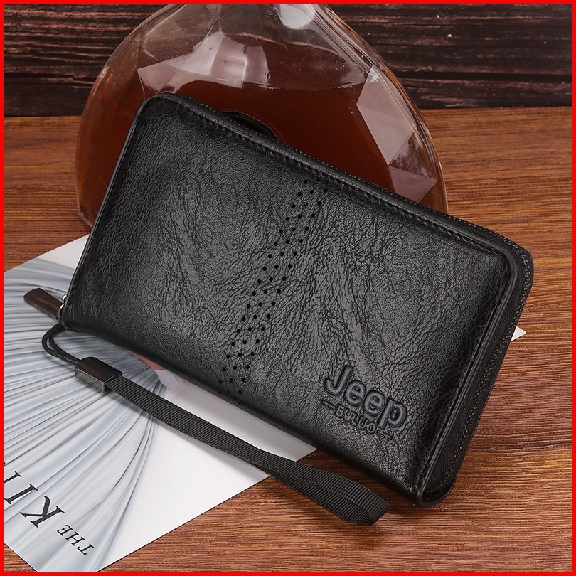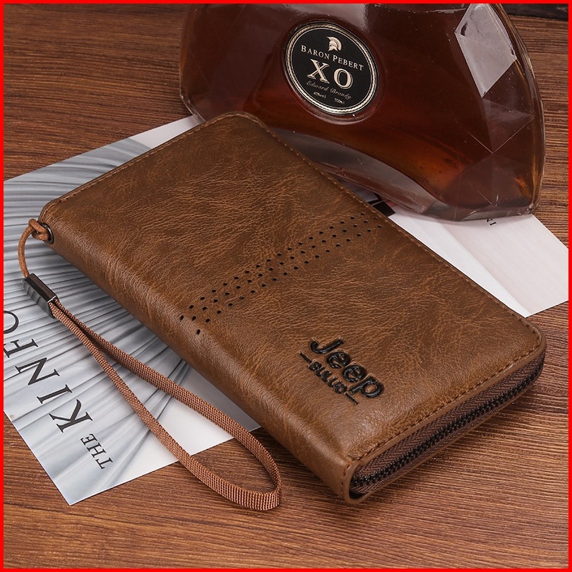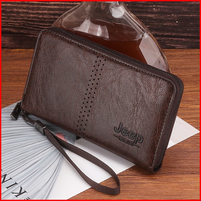 Dompet Pria Jeep Buluo Kulit Panjang - Clutch Resleting Premium Dengan Wristlet Import Original Multifungsi Untuk Hp Kar